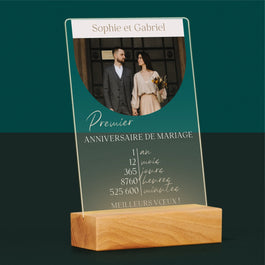 €19,99Prix unitaire /IndisponiblePhoto Et Texte: Premier Anniversaire De Mariage - Impression sur verre acrylique LED