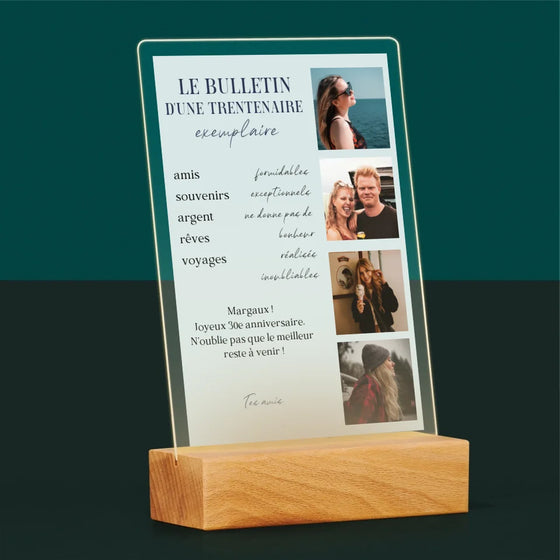 €19,99Prix unitaire /IndisponibleLe Collage Photo: Le Bulletin D'Une Trentenaire Exemplaire - Impression sur verre acrylique LED
