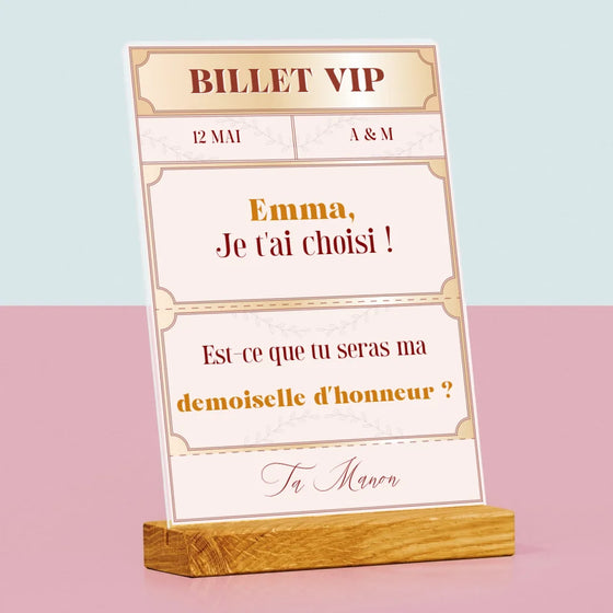 Le Prénom Et Un Texte: Billets Vip Demoiselle D'Honneur - Bloc acrylique - vertical