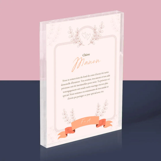 €22,99Prix unitaire /IndisponibleLe Prénom Et Un Texte: Remerciements Au Demoiselle D'Honneur - Bloc acrylique - vertical