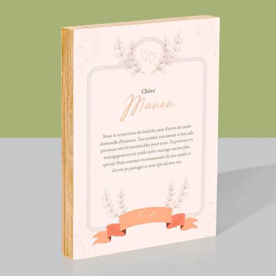 €15,99Prix unitaire /IndisponibleLe Prénom Et Un Texte: Remerciements Au Demoiselle D'Honneur - Impression sur bois - vertical