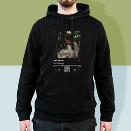 €43,99Prix unitaire /IndisponibleLa Photo Et Un Texte: Spotify Avec Code Qr - Sweat à capuche pour hommes