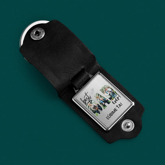 Słowo Ze Zdjęć: Best Dad Ever z Podpisem - Kožená kľúčenka s fotografiou