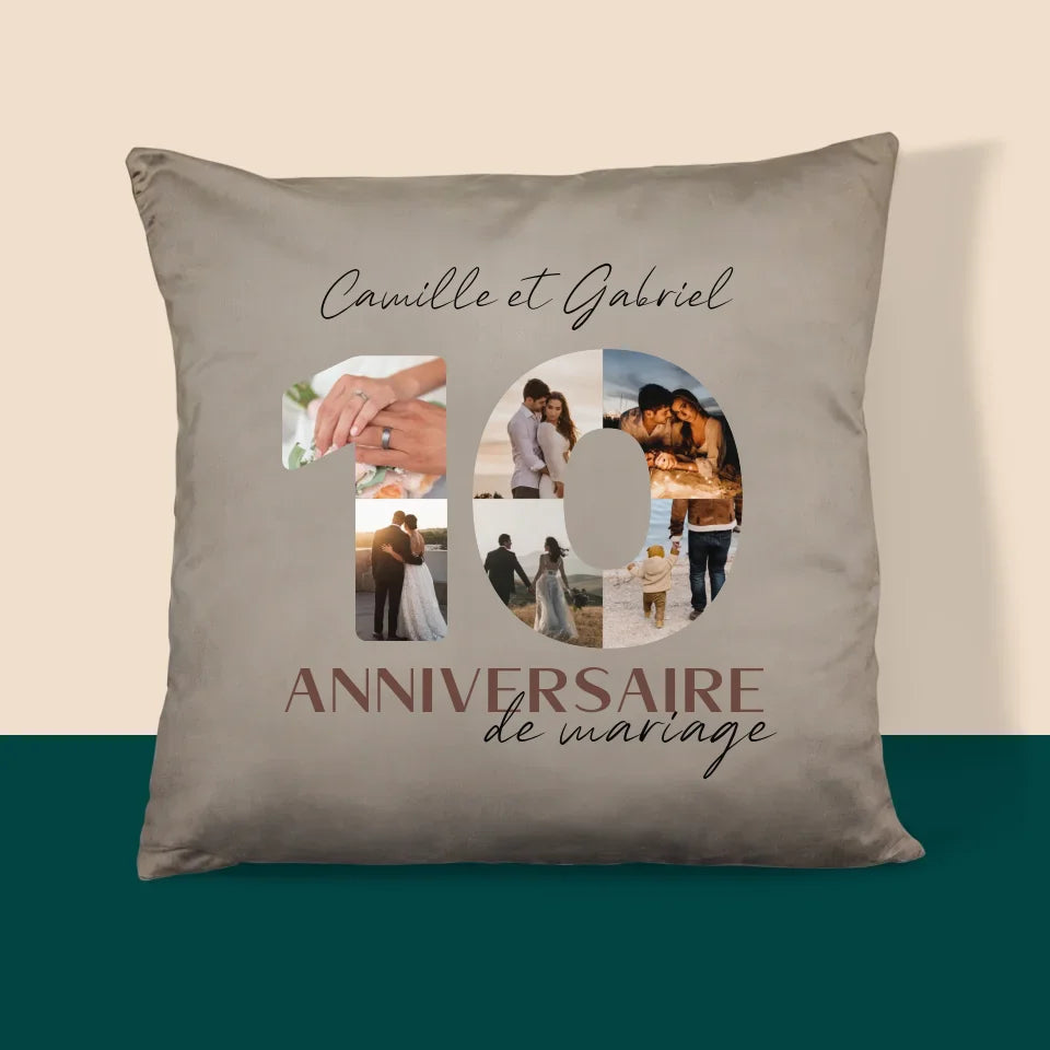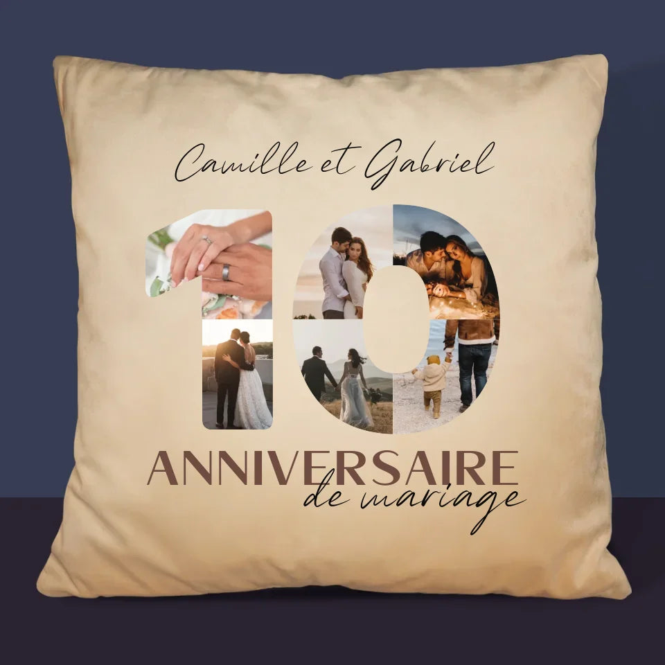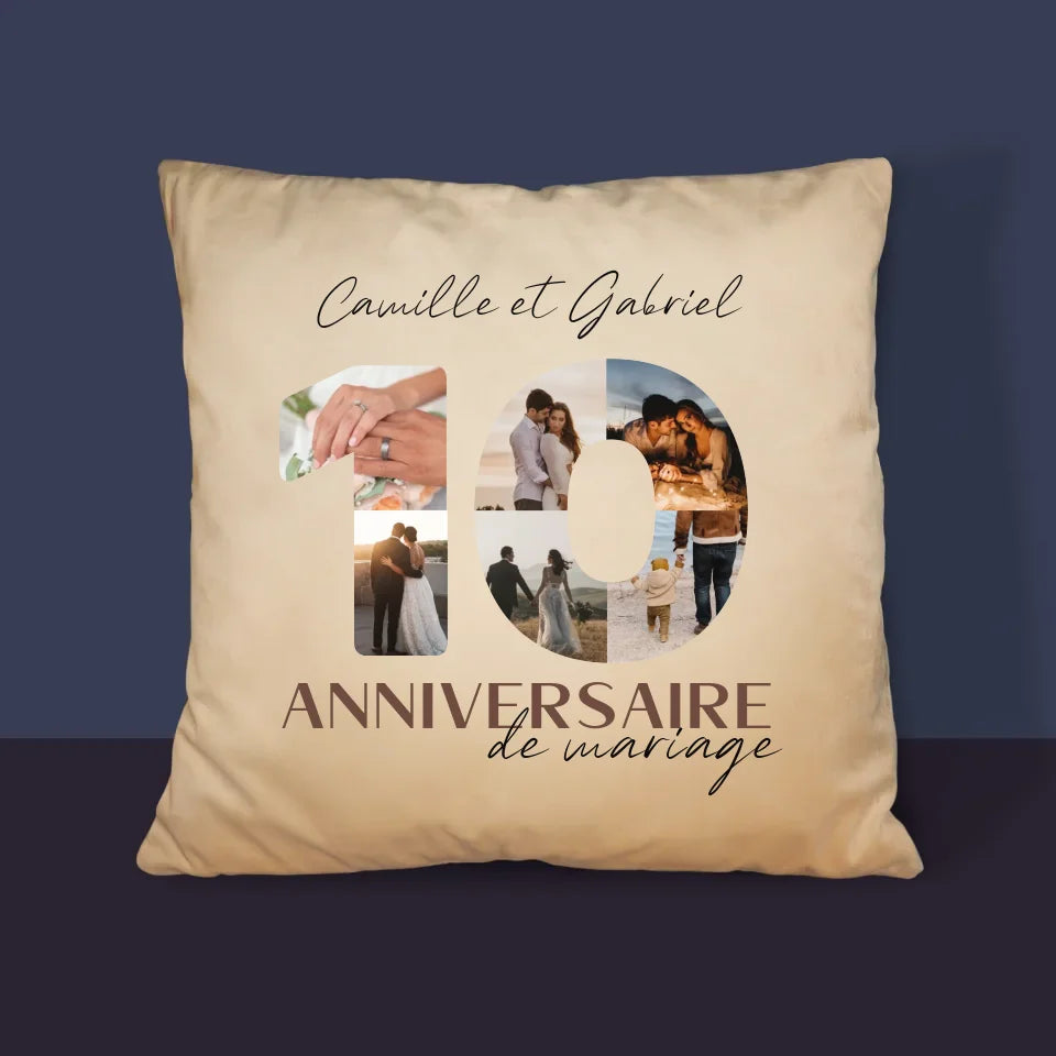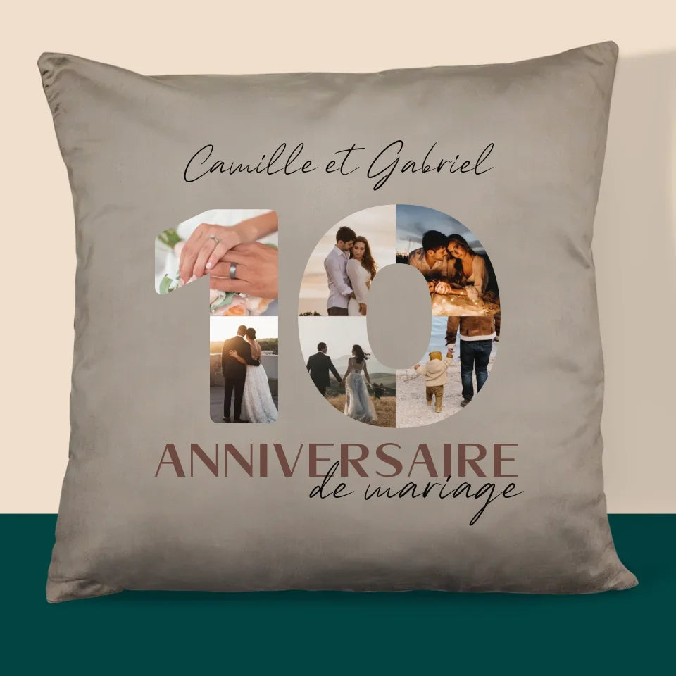 Collage Photo De Lettre: 10 Anniversaire De Mariage - Coussin