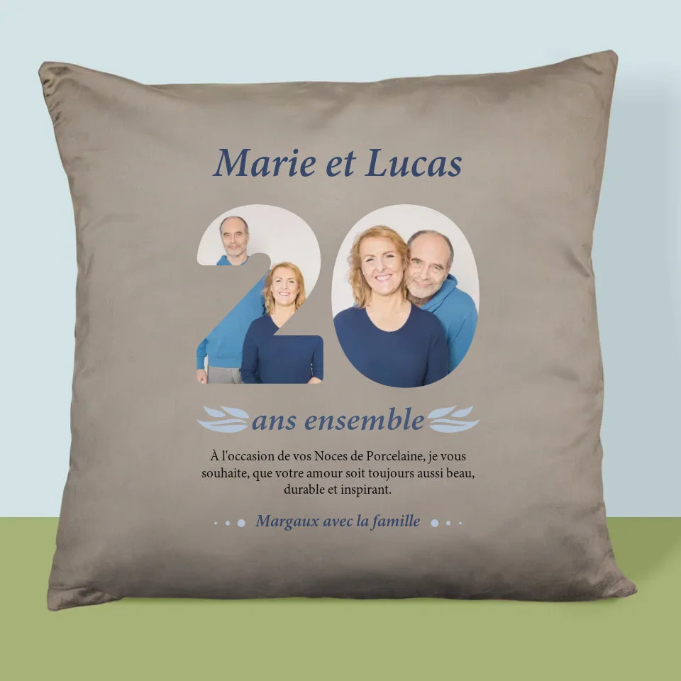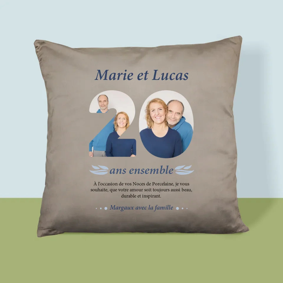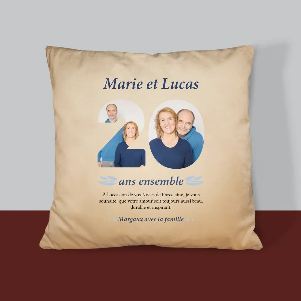 Collage Photo De Lettre: 20 Anniversaire De Mariage - Coussin