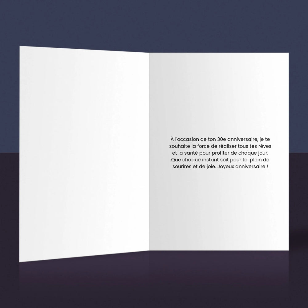 Dimensions de la carte pliée : standard : 13 x 18 cm, version XL : 21 x 29,5 cm.