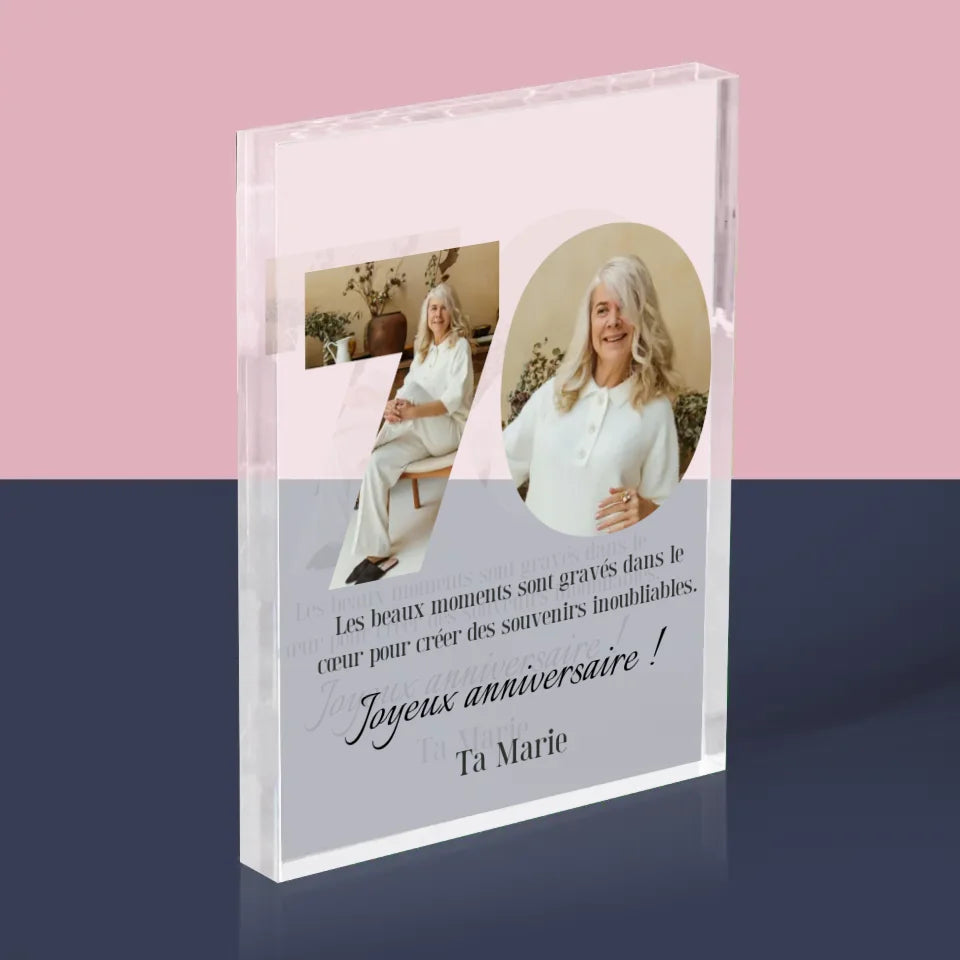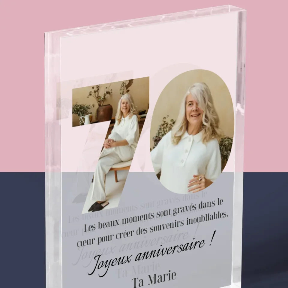 Collage Photo De Lettre: 70Ème Anniversaire - Bloc acrylique - vertical