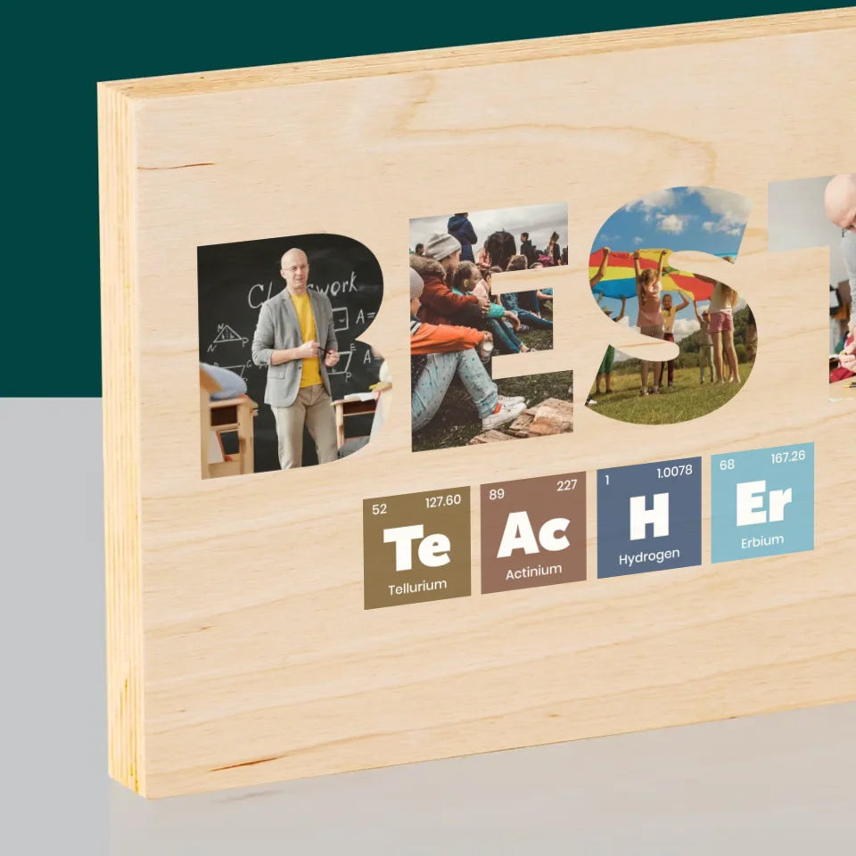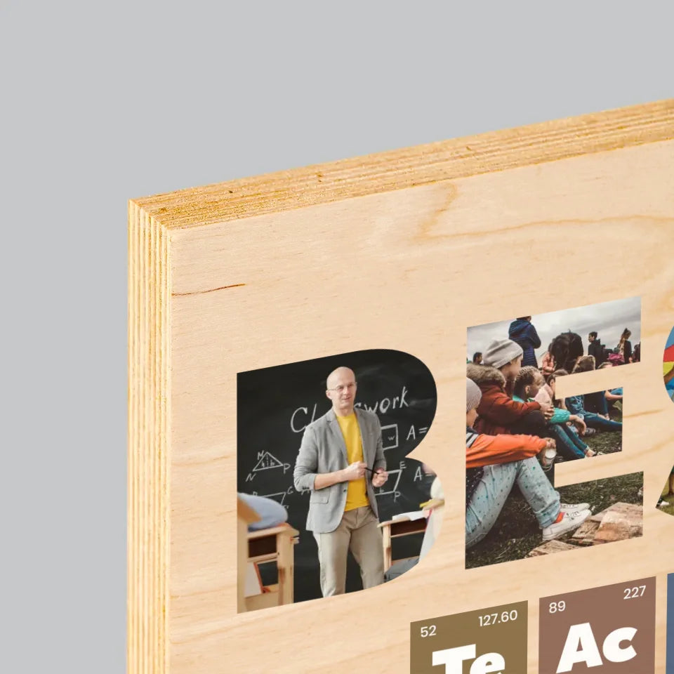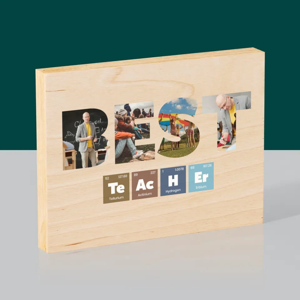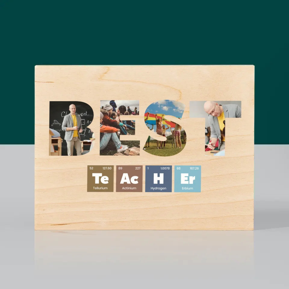 Collage Photo De Lettre: Best Teacher Les Éléments - Impression sur bois - horizontal