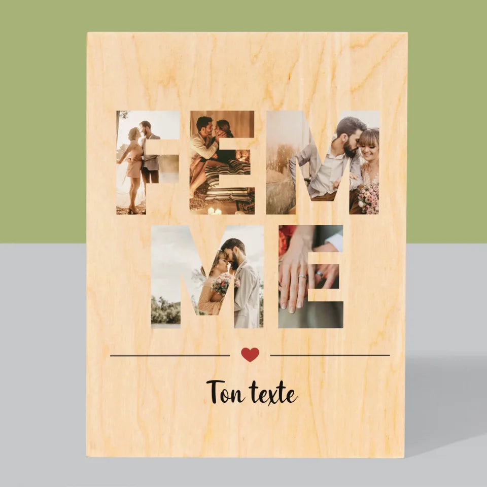 Collage Photo De Lettre: La Femme De Tes Photos - Impression sur bois - vertical