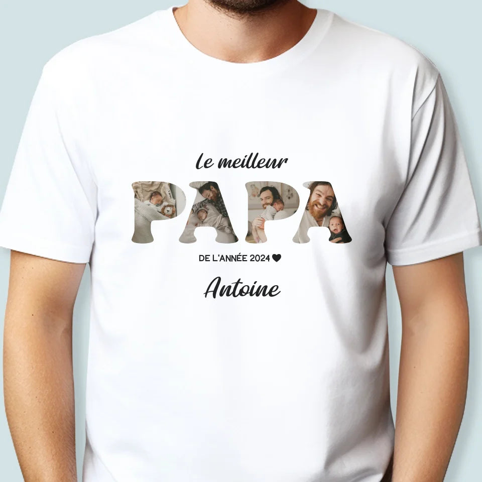 Collage Photo De Lettre: Le Meilleur Papa De L'Année - T-shirt pour hommes