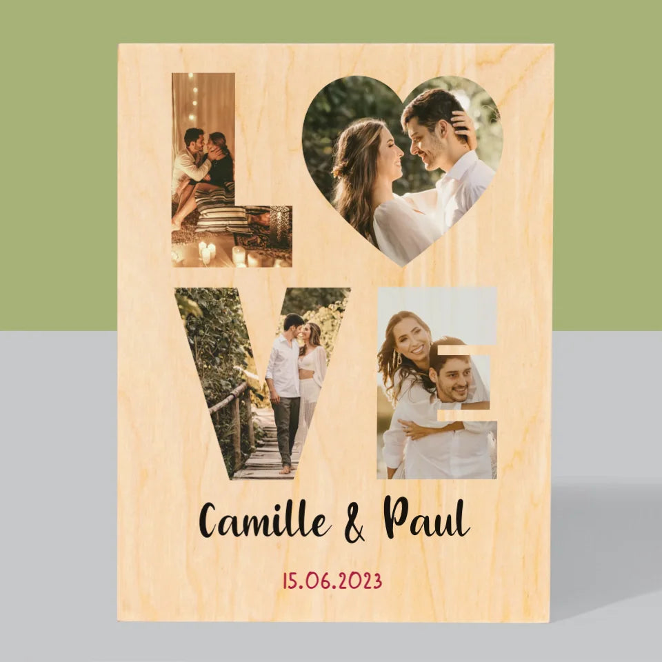 Collage Photo De Lettre: Love De Tes Photos - Impression sur bois - vertical