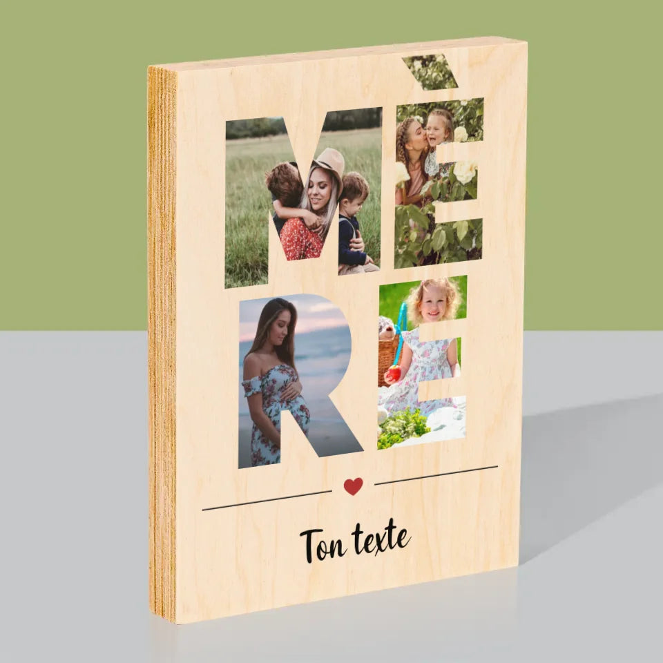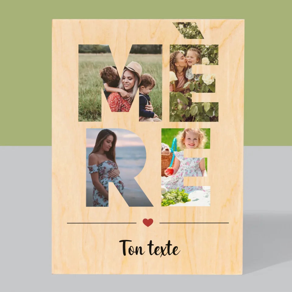 Collage Photo De Lettre: Mère Des Photos - Impression sur bois - vertical
