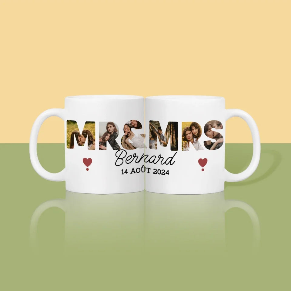 Collage Photo De Lettre: Mr&Mrs - Mug coeur