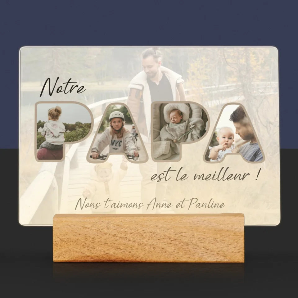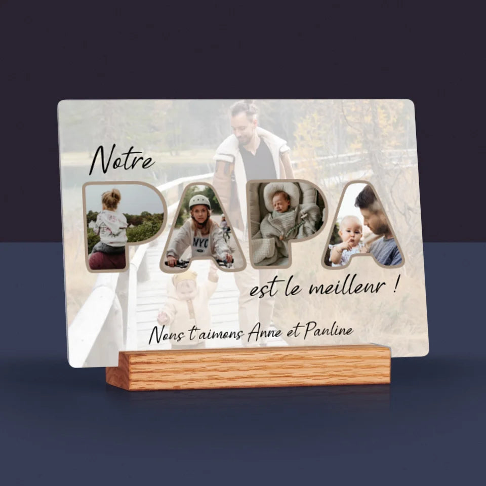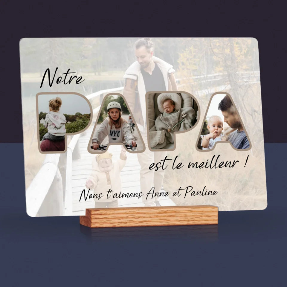 Collage Photo De Lettre: Notre Papa Est Le Meilleur - Impression sur verre acrylique