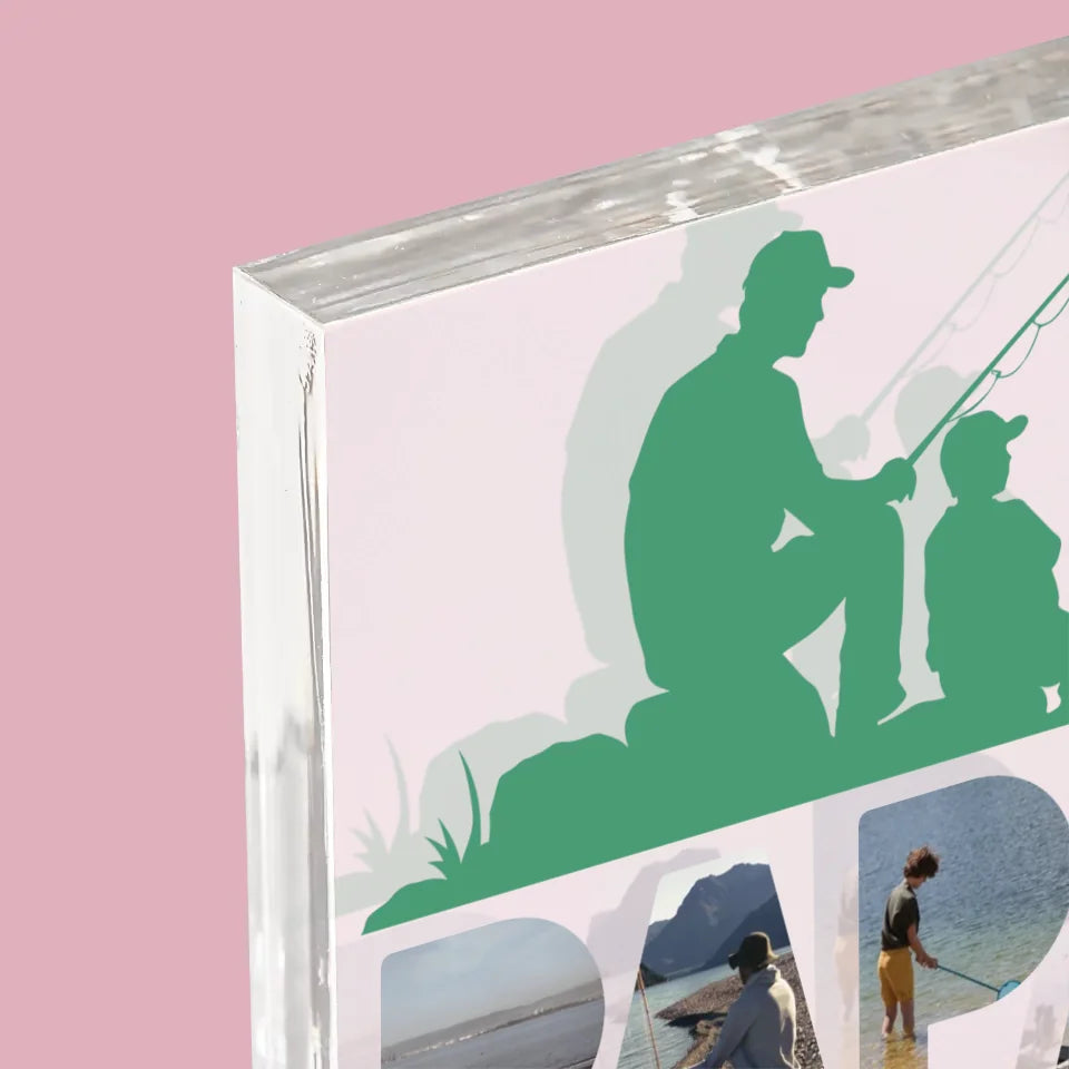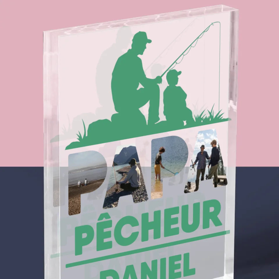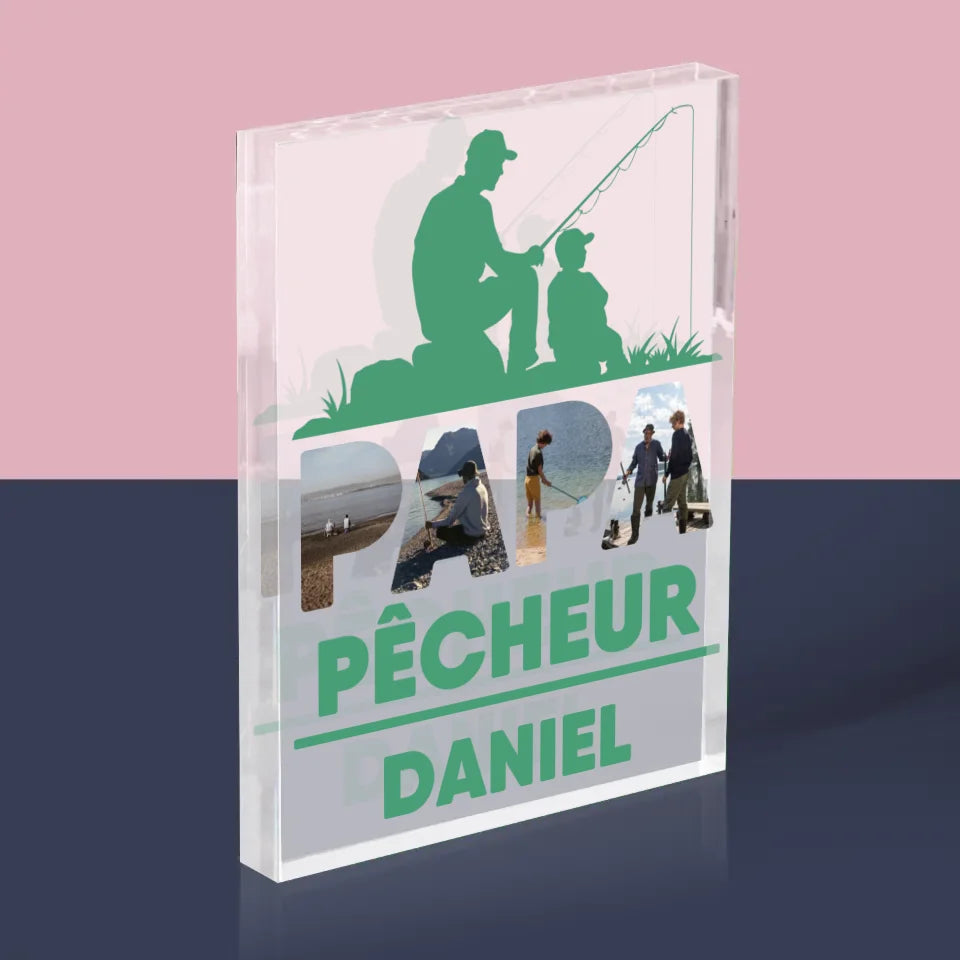 Collage Photo De Lettre: Papa Pêcheur - Bloc acrylique - vertical
