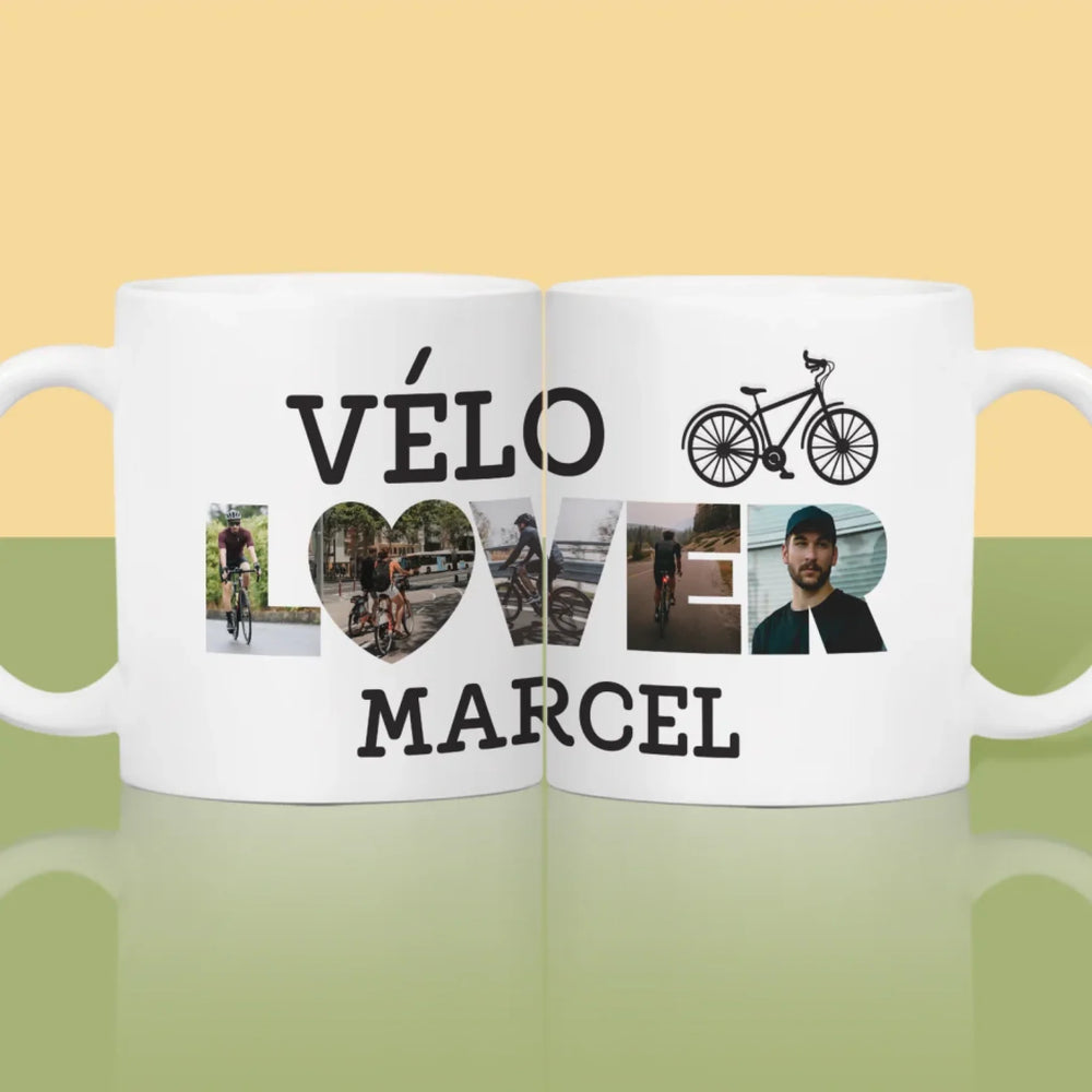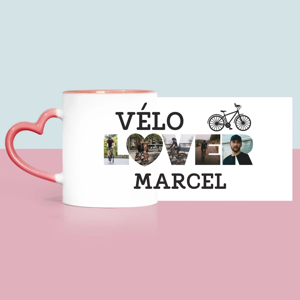 Collage Photo De Lettre: Vélo Lover - Mug coeur