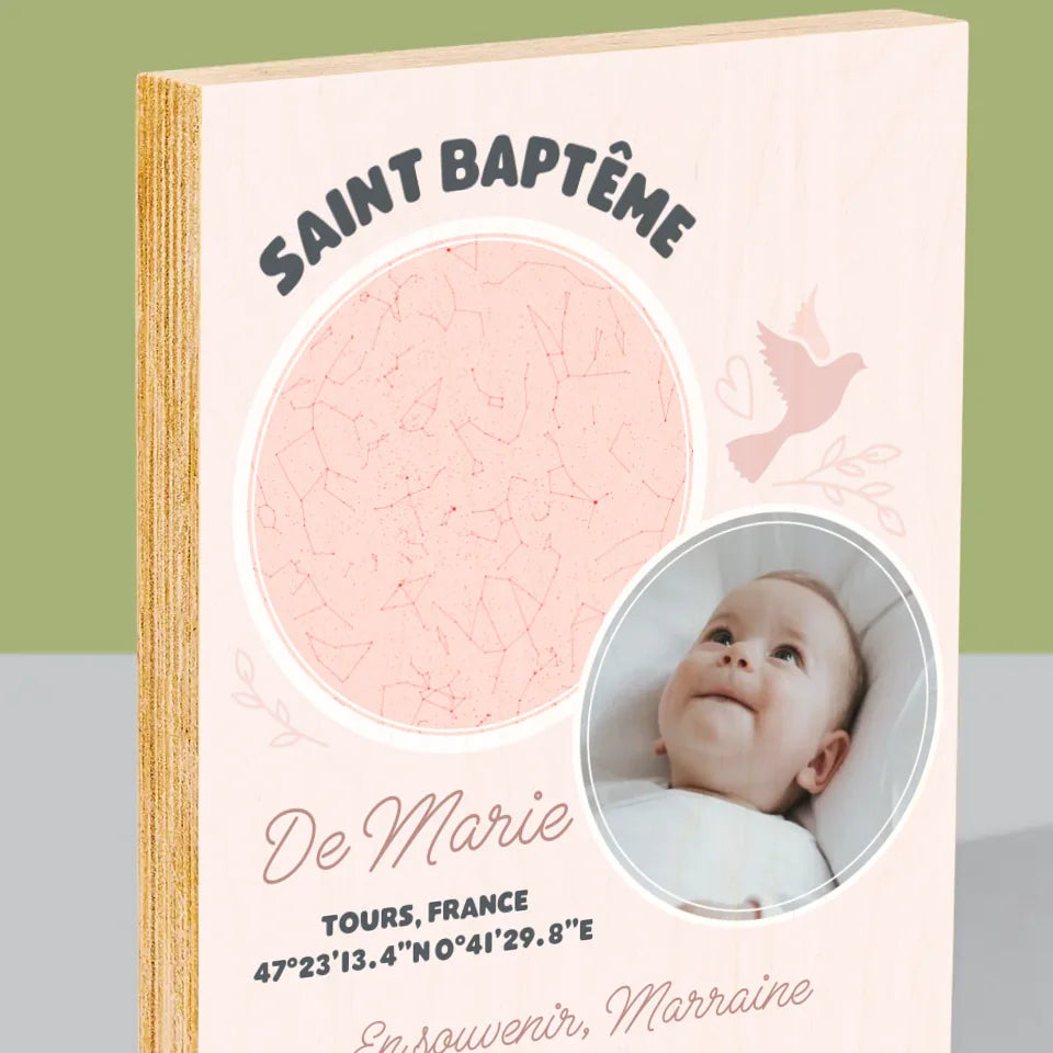 Carte Des Étoiles: Baptême - Impression Sur Bois