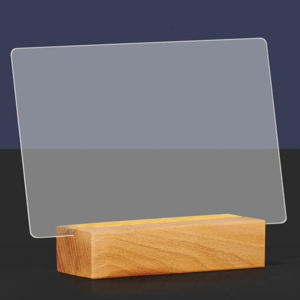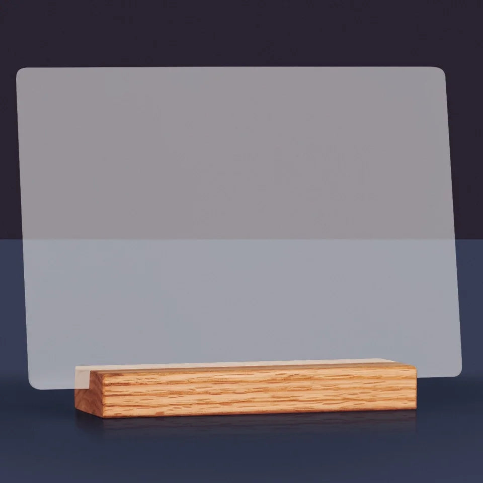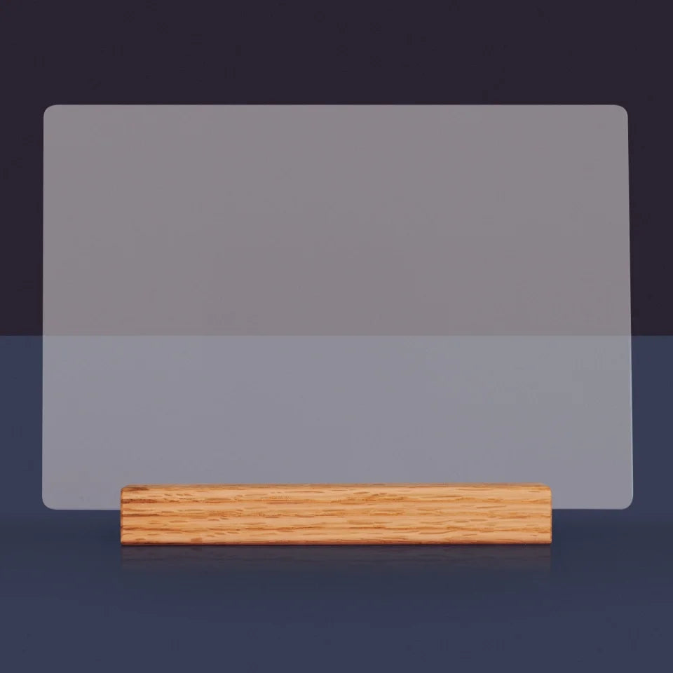 Dimensions du verre A5 : 21 x 12,5 cm, dimensions du support en bois : 15 x 4,5 cm Dimensions du verre A4 : 29,5 x 22 cm, dimensions du support en bois : 15 x 4,5 cm