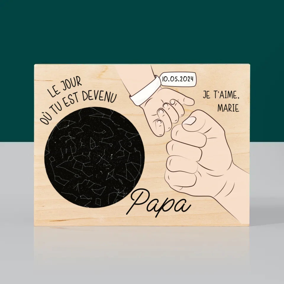 La Carte Des Étoiles: Le Jour Où Tu Est Devenu - Impression sur bois - horizontal