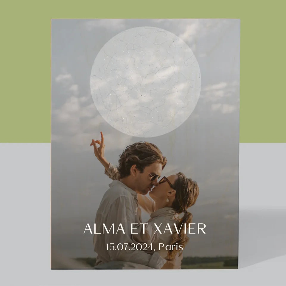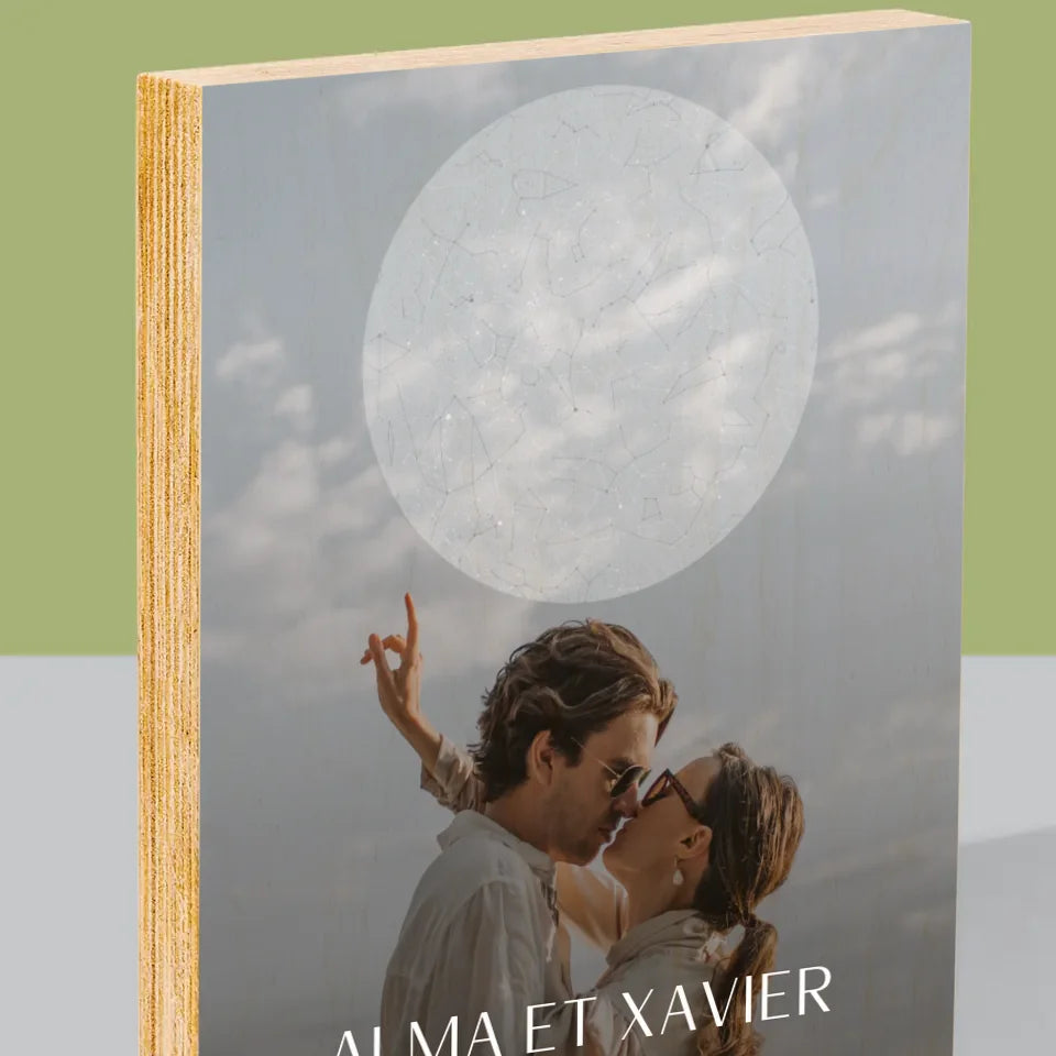 Carte Des Étoiles: Le Mariage - Impression sur bois - vertical