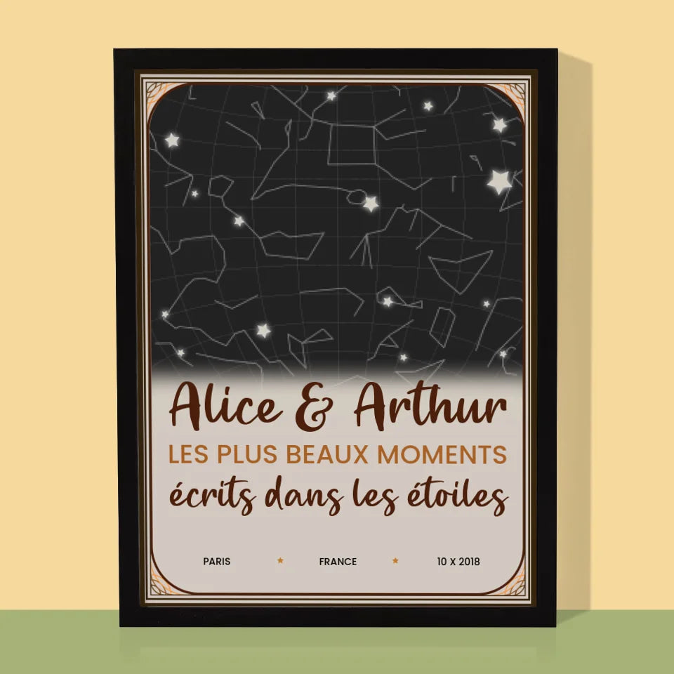 Carte Des Étoiles: Les Plus Beaux Moments - Impression encadrée - Vertical