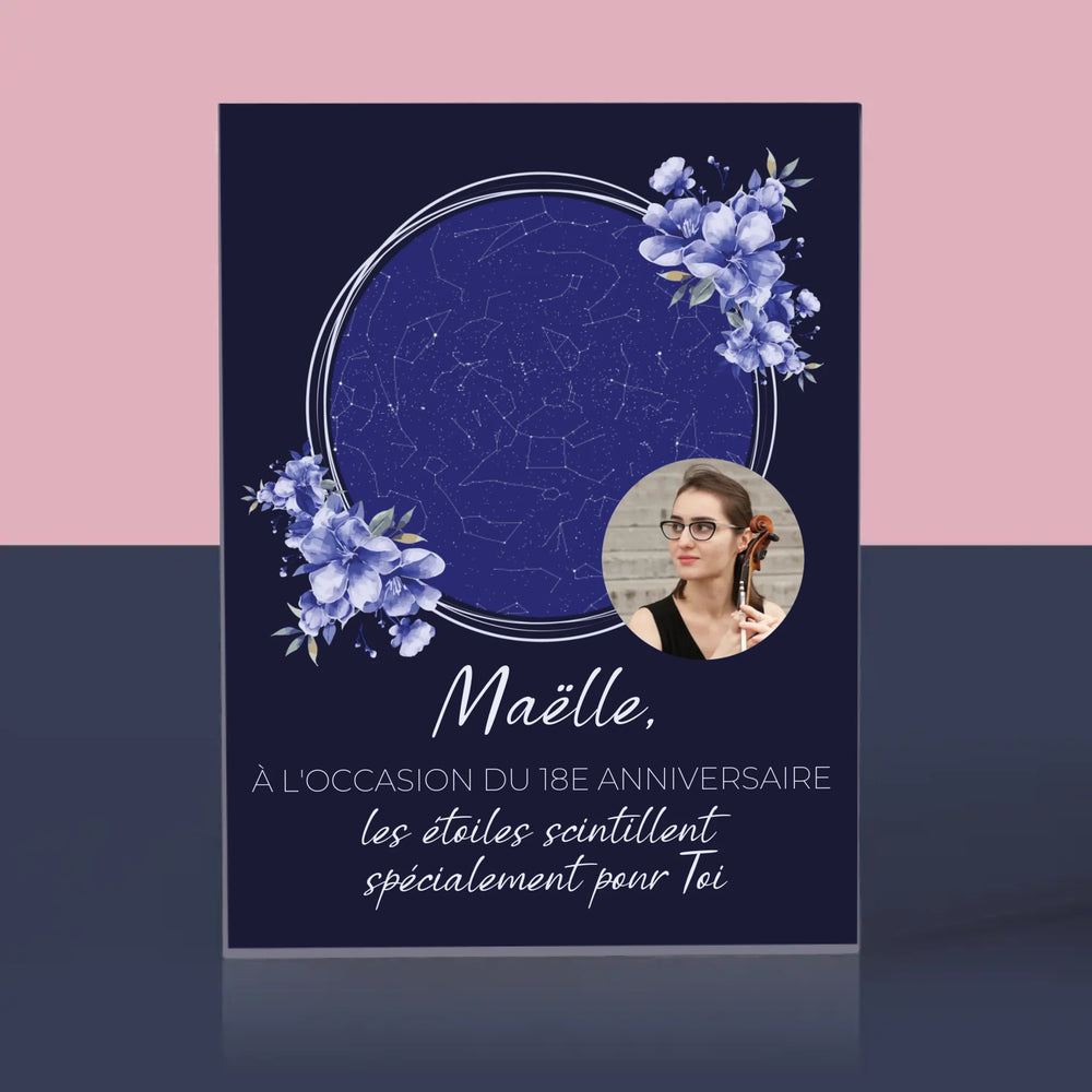 Carte Des Étoiles: Les Étoiles Scintillent Pour Célébrer Ton Anniversaire - Bloc acrylique - vertical