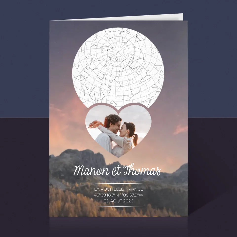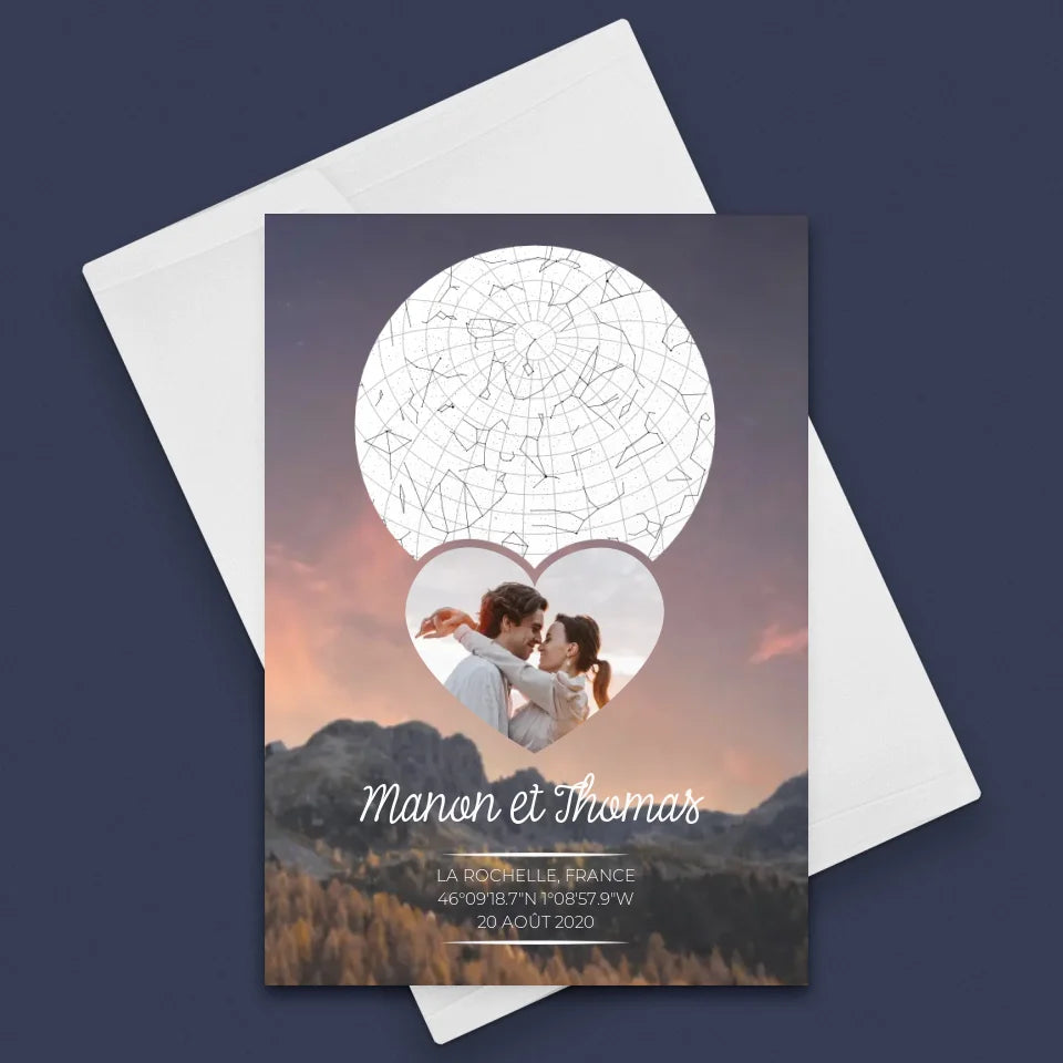 Carte Des Étoiles: Un Couple Amoureux À La Montagne - Carte de vœux