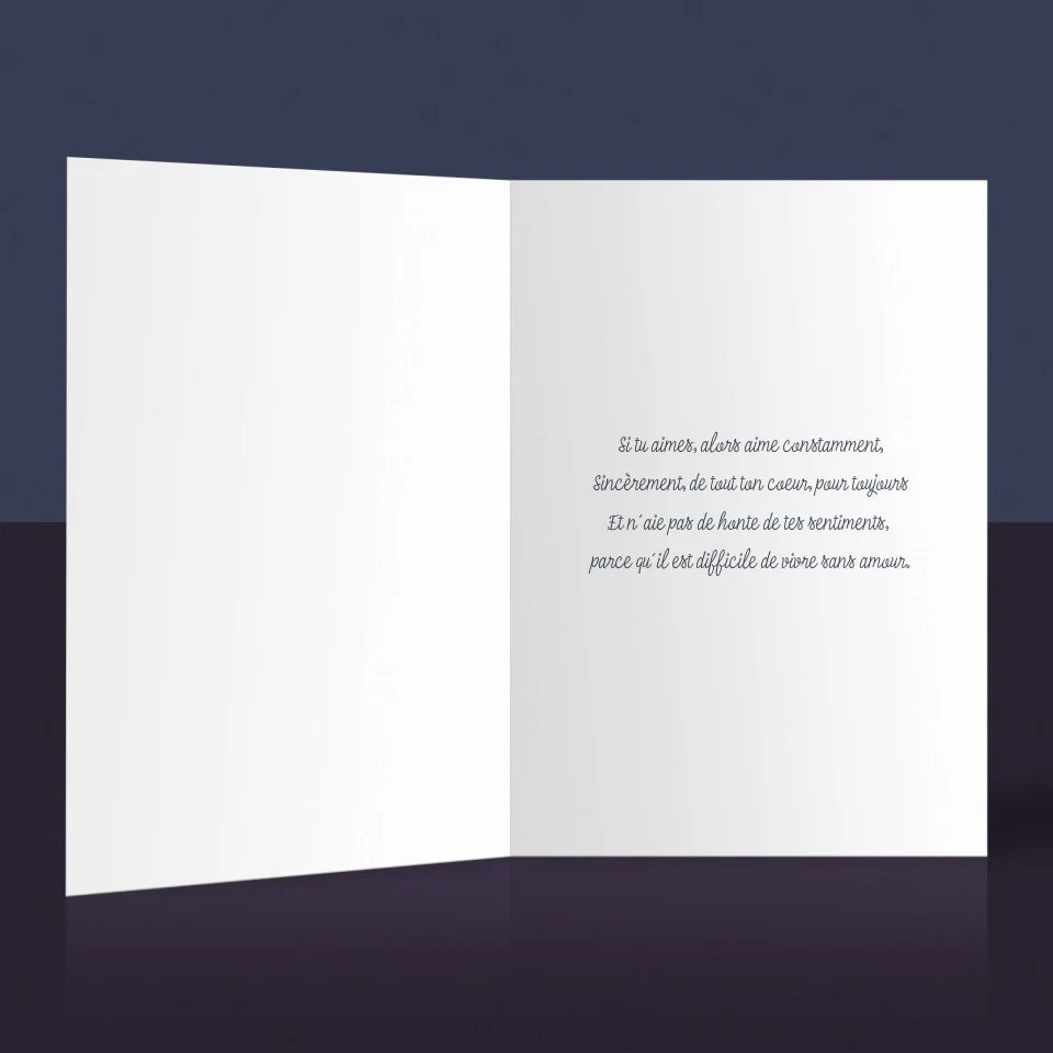 Dimensions de la carte pliée : standard : 13 x 18 cm, version XL : 21 x 29,5 cm.