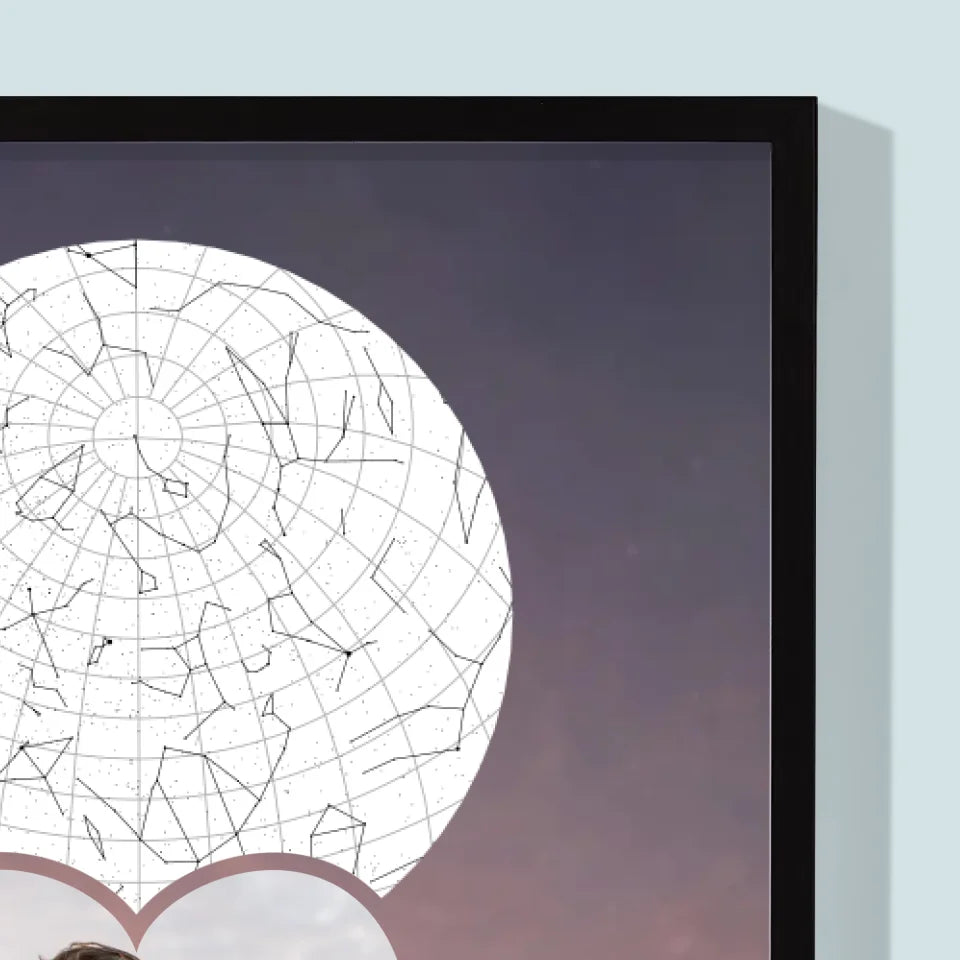 Carte Des Étoiles: Un Couple Amoureux À La Montagne - Impression encadrée - Vertical
