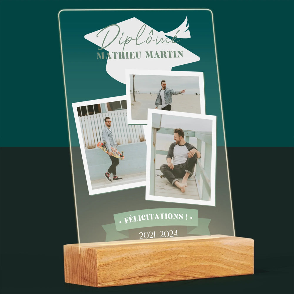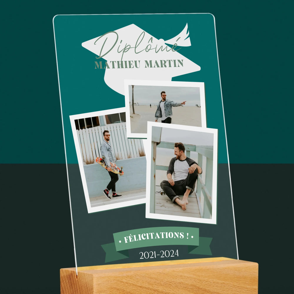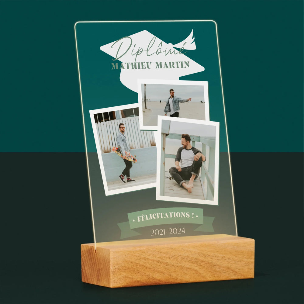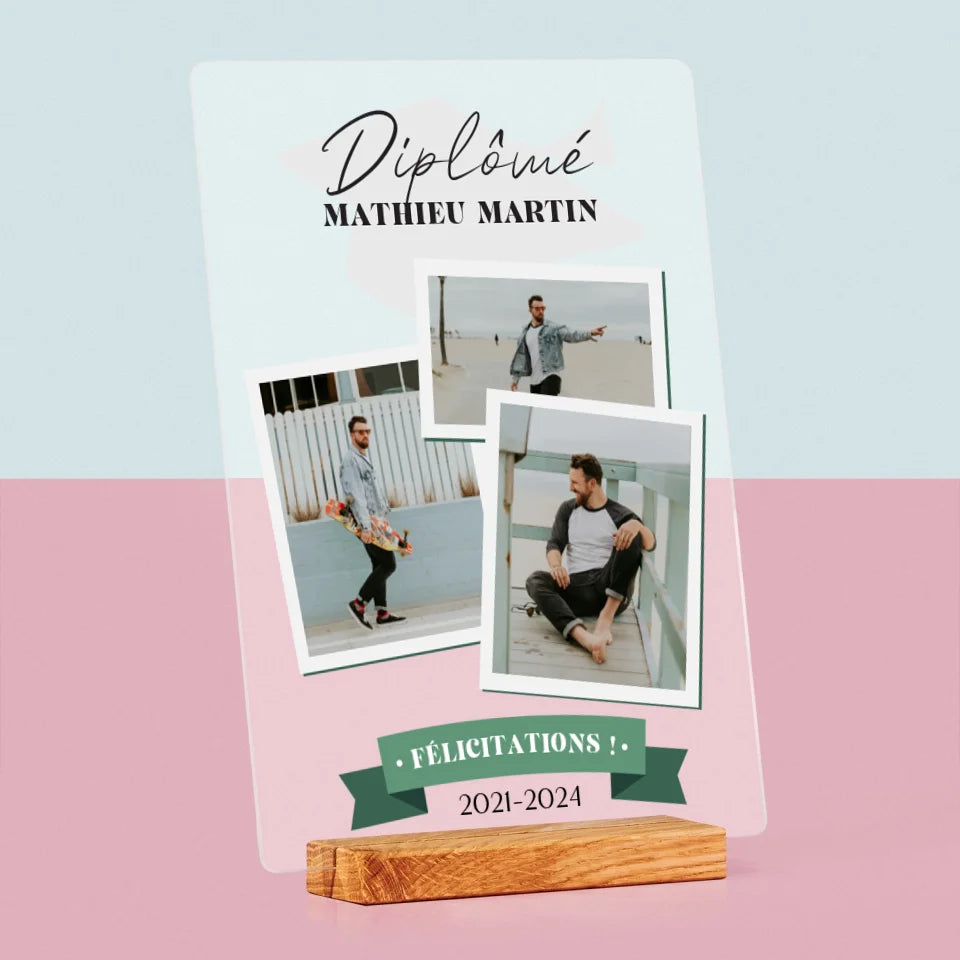 Dimensions du verre A4 : 29,5 x 22 cm, dimensions du support en bois : 15 x 4,5 cm