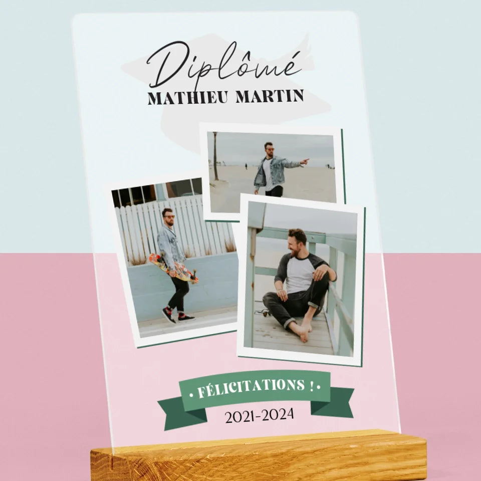 Dimensions du verre A4 : 29,5 x 22 cm, dimensions du support en bois : 15 x 4,5 cm