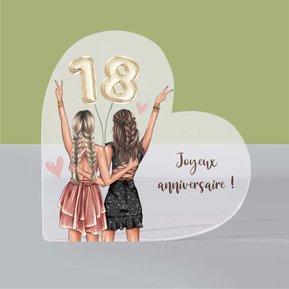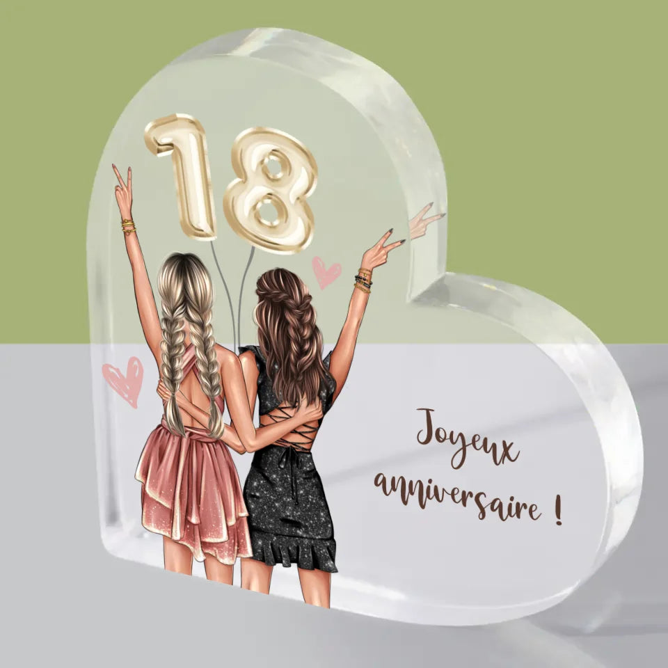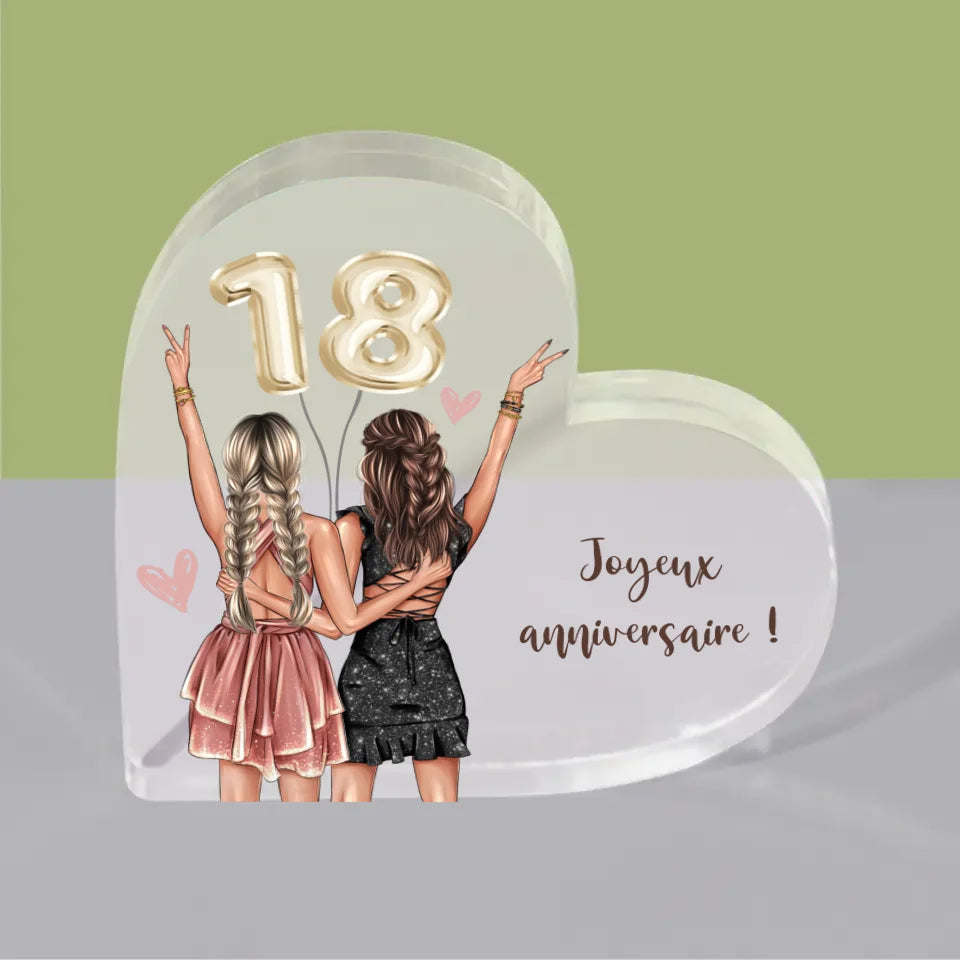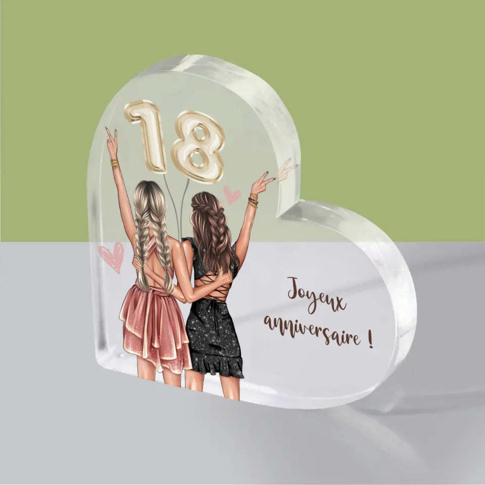 La Création Du Personnage: Amies Dix-Huit Ans - Bloc acrylique cœur