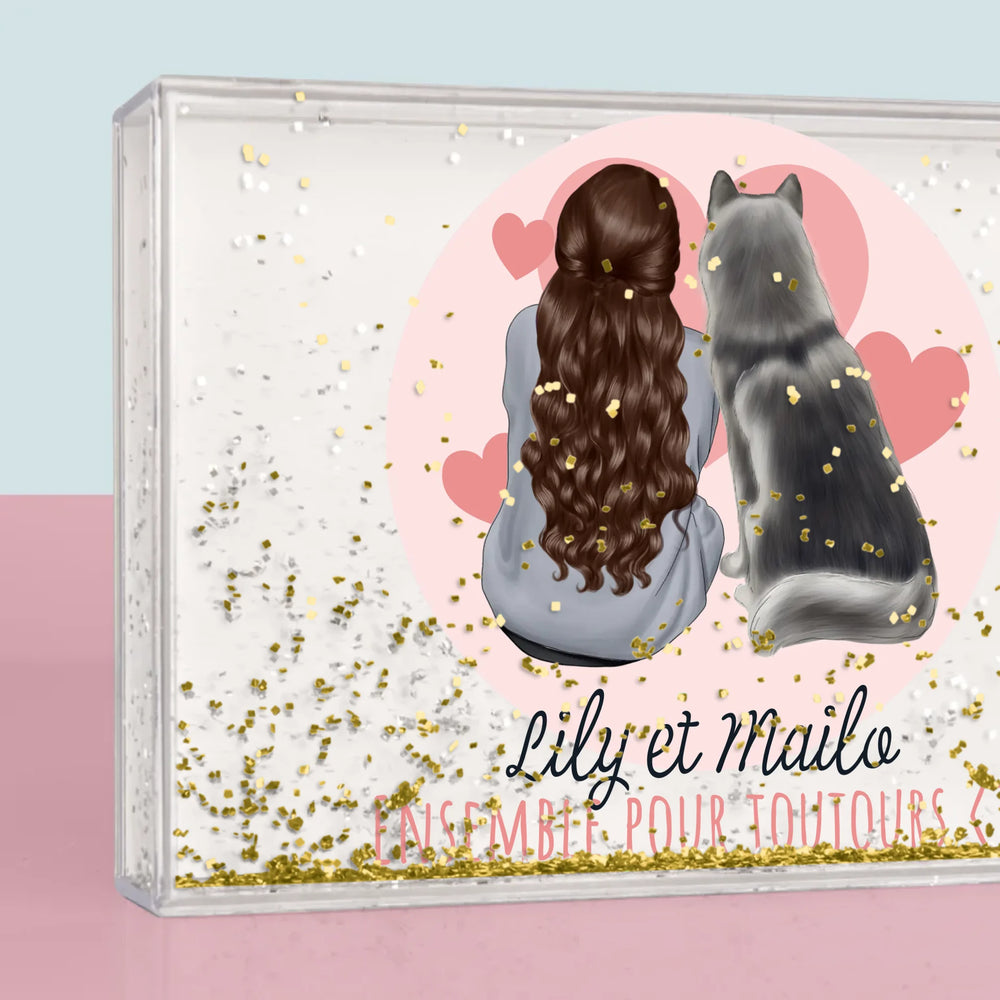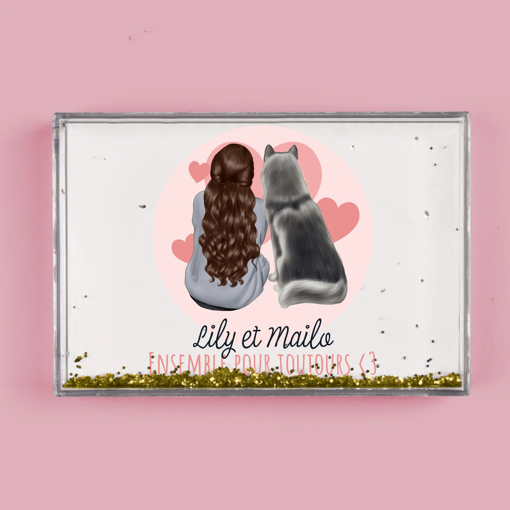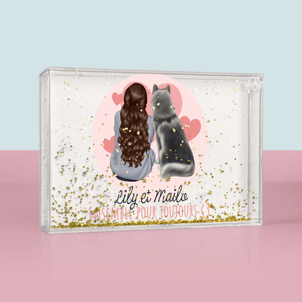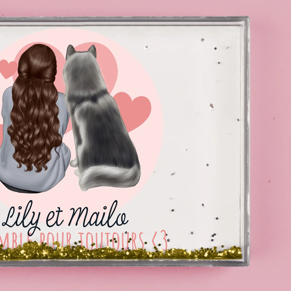 Fabriqué en plastique transparent, l'intérieur est rempli d'eau et de confettis en forme de cœur !