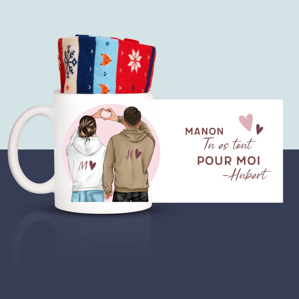La Création Du Personnage: Couple Cœur - Chaussettes d'hiver dans une tasse