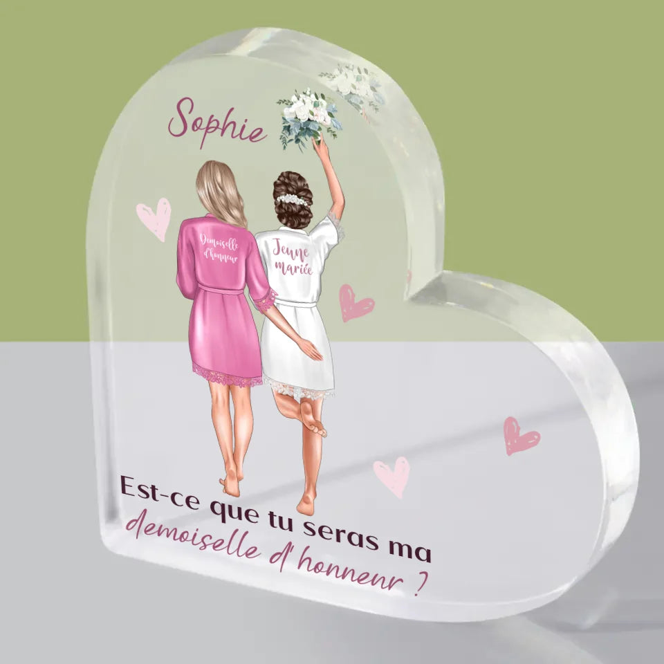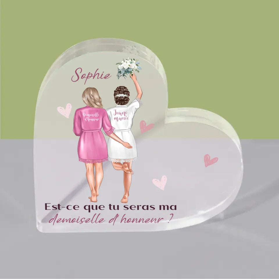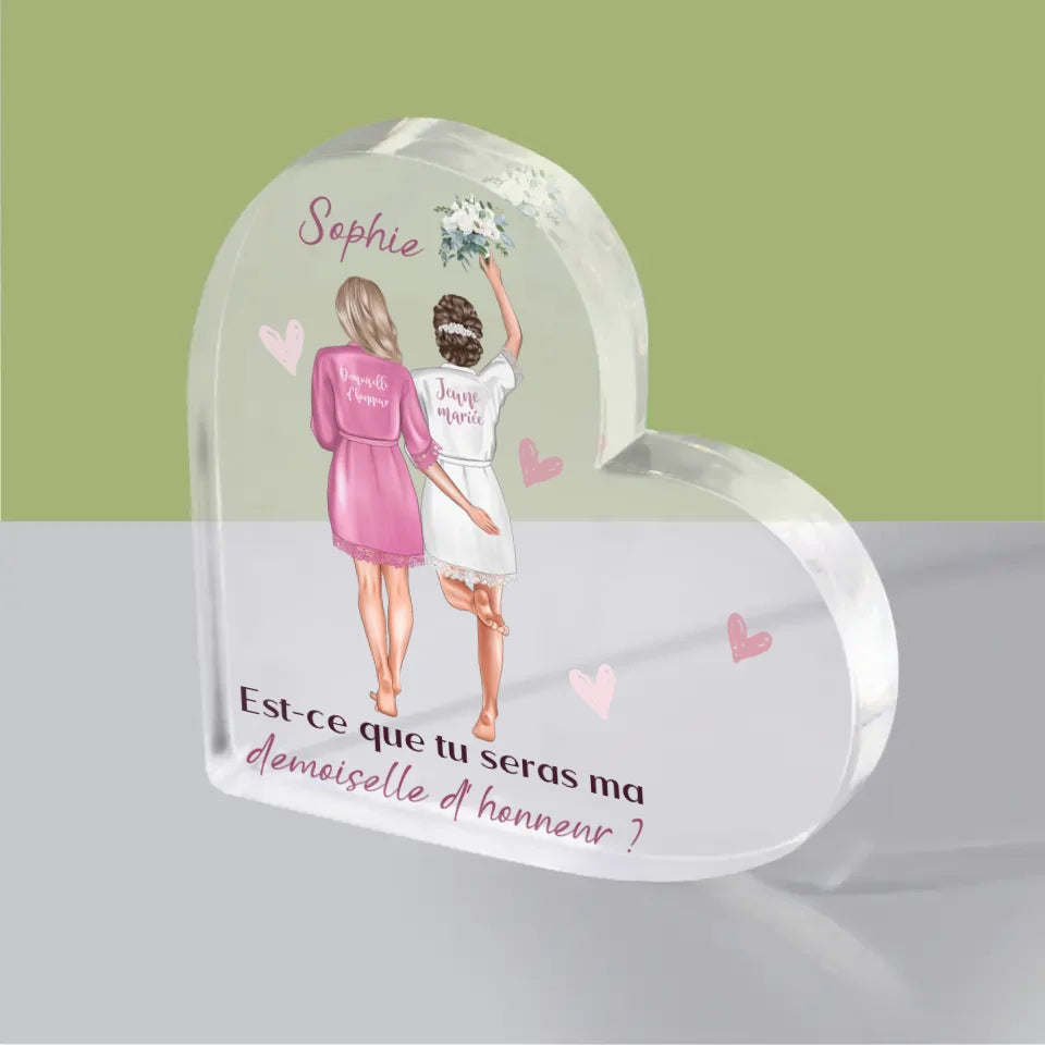La Création Du Personnage: Est-Ce Que Tu Seras Ma Demoiselle D'Honneur - Bloc acrylique cœur