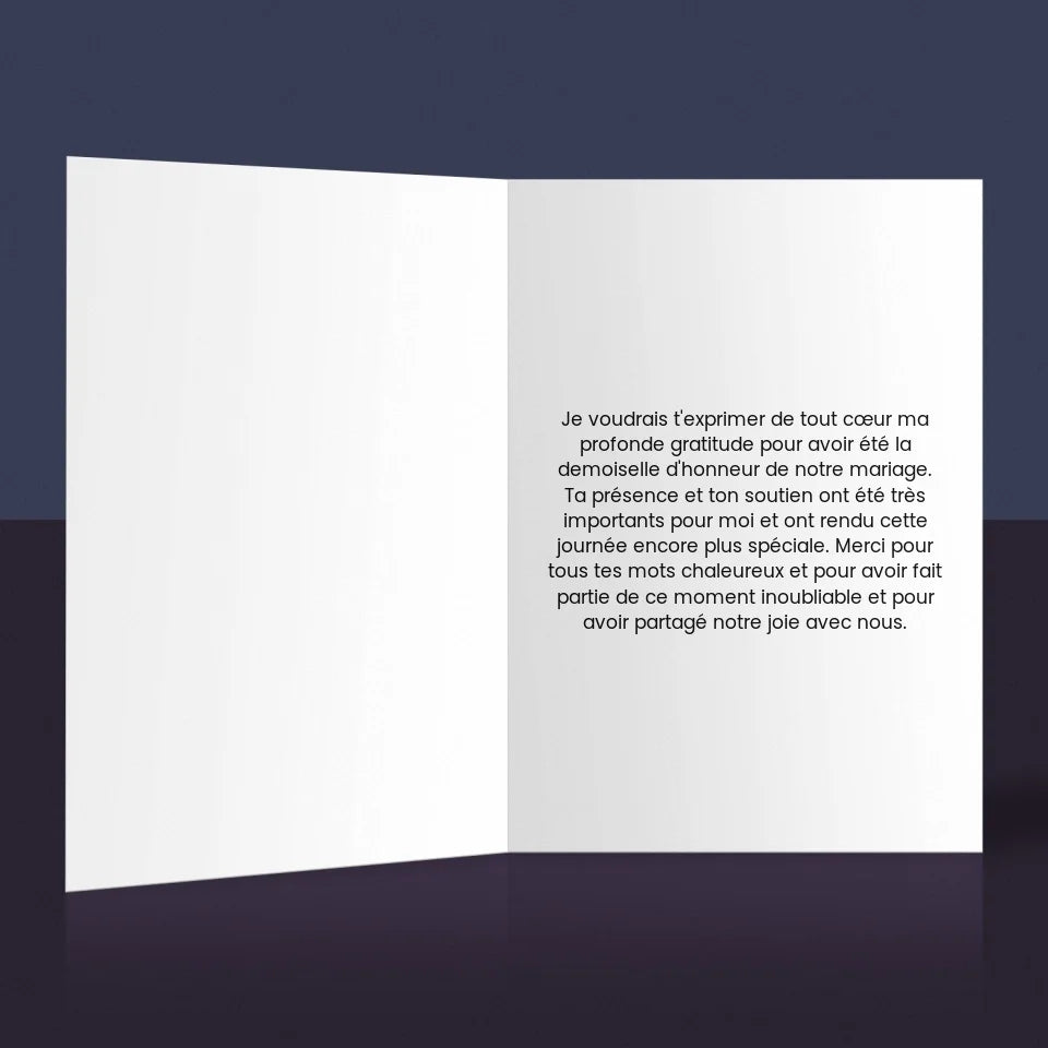 Dimensions de la carte pliée : standard : 13 x 18 cm, version XL : 21 x 29,5 cm.