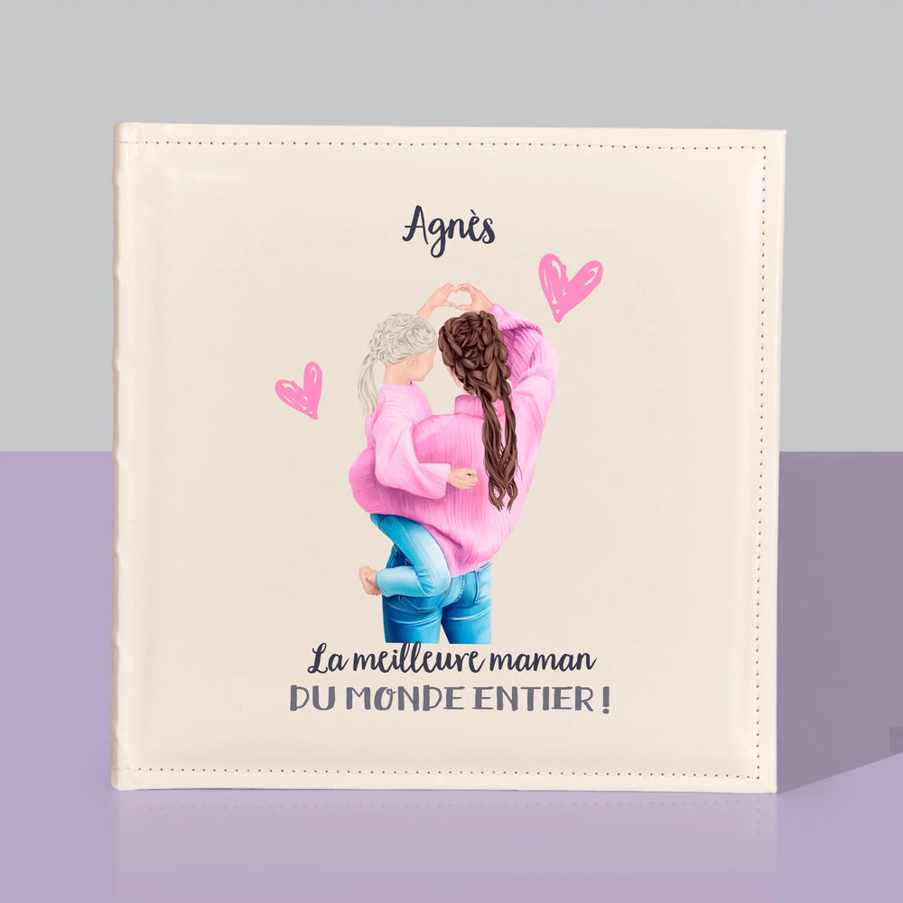 Un album photo traditionnel avec personnalisation au choix sur la couverture.