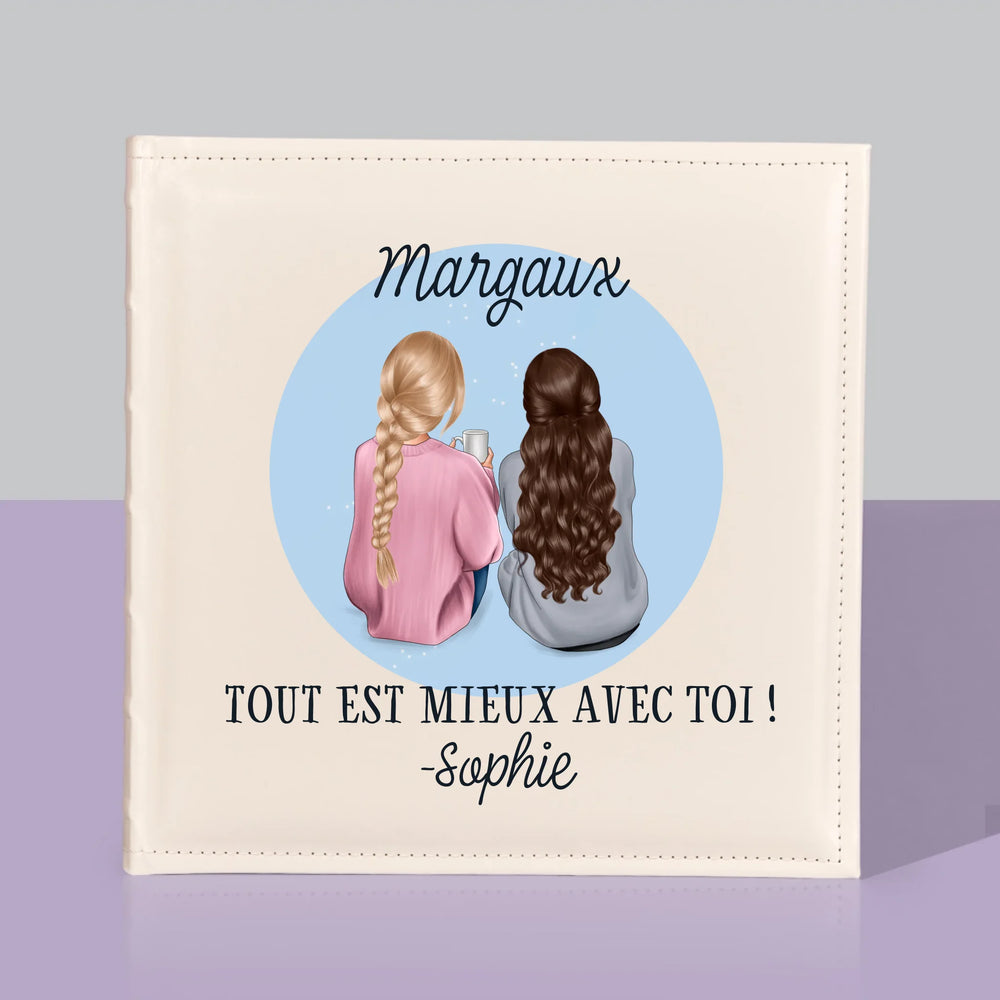 Un album photo traditionnel avec personnalisation au choix sur la couverture.