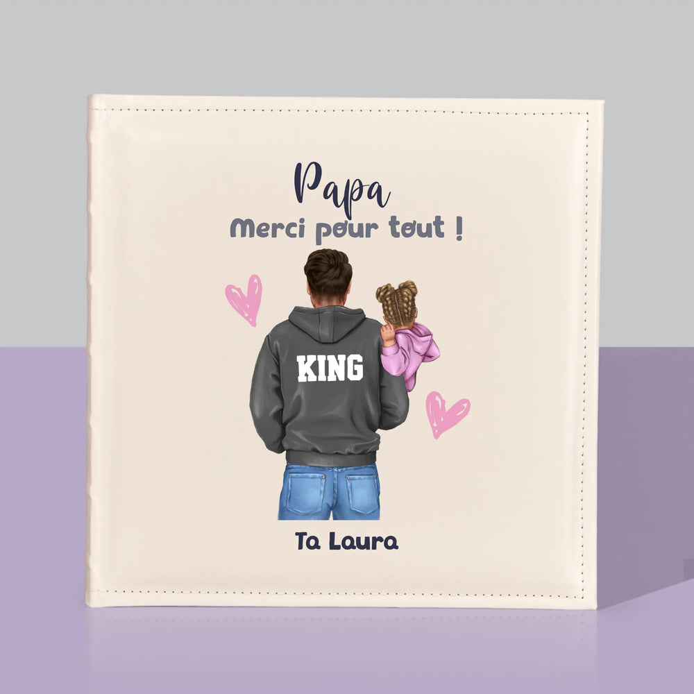 Un album photo traditionnel avec personnalisation au choix sur la couverture.