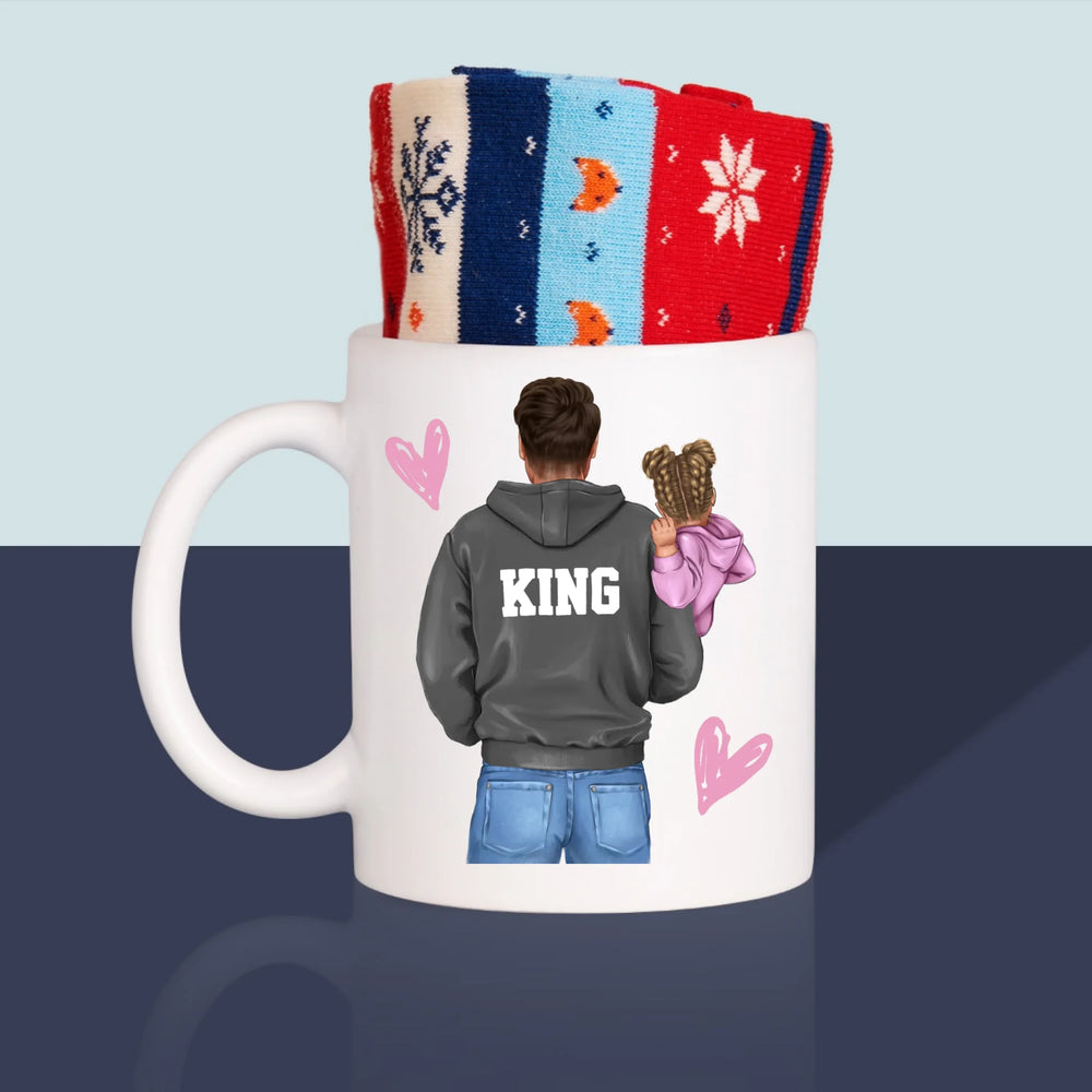 La Création Du Personnage: Papa Avec Enfant - Chaussettes d'hiver dans une tasse