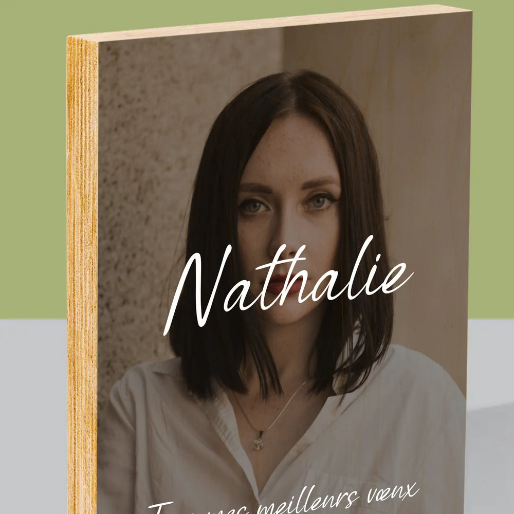 L'impression sur bois de 1,8 cm d'épaisseur d'un motif personnalisé de votre choix.