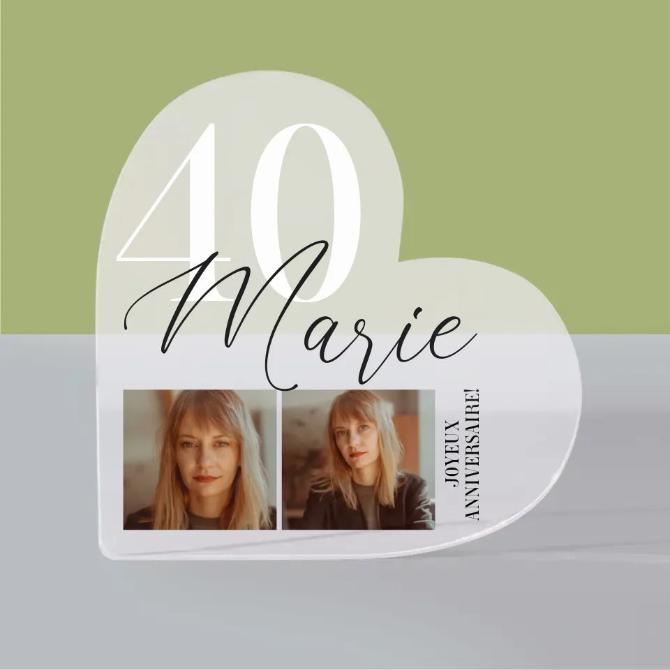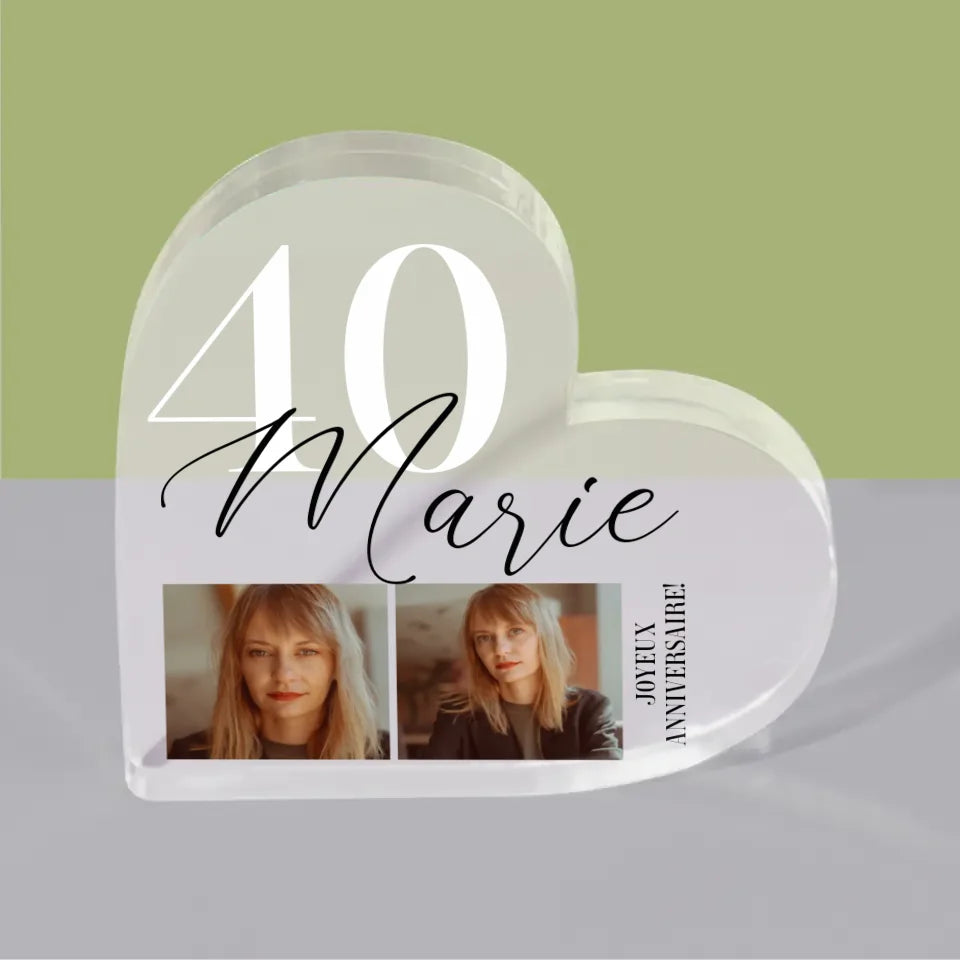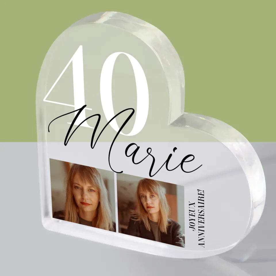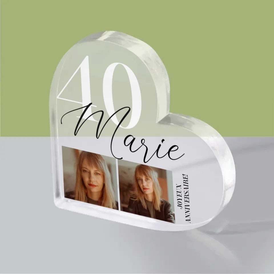 Photo Et Texte: 40Ème Anniversaire - Bloc acrylique cœur