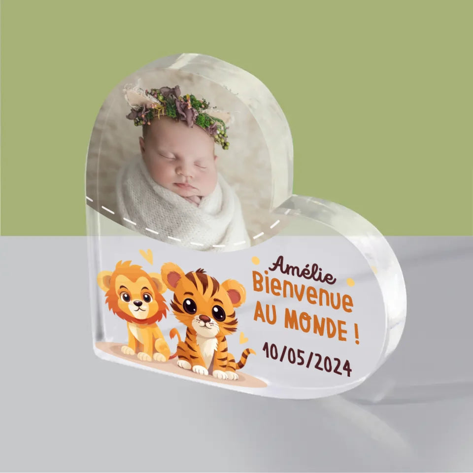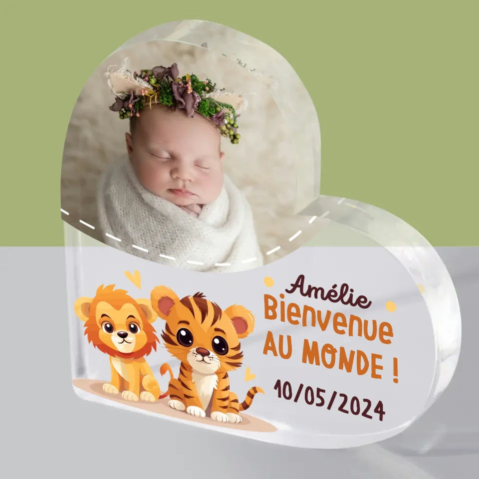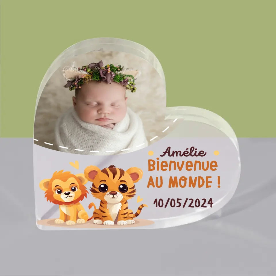 Photo Et Texte: Bienvenue Dans Le Monde - Bloc acrylique cœur