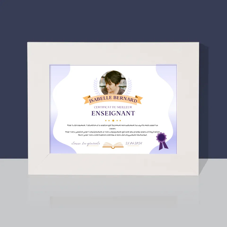 Photo Et Texte: Certificat De Meilleur Enseignant - Cadre photo - horizontal