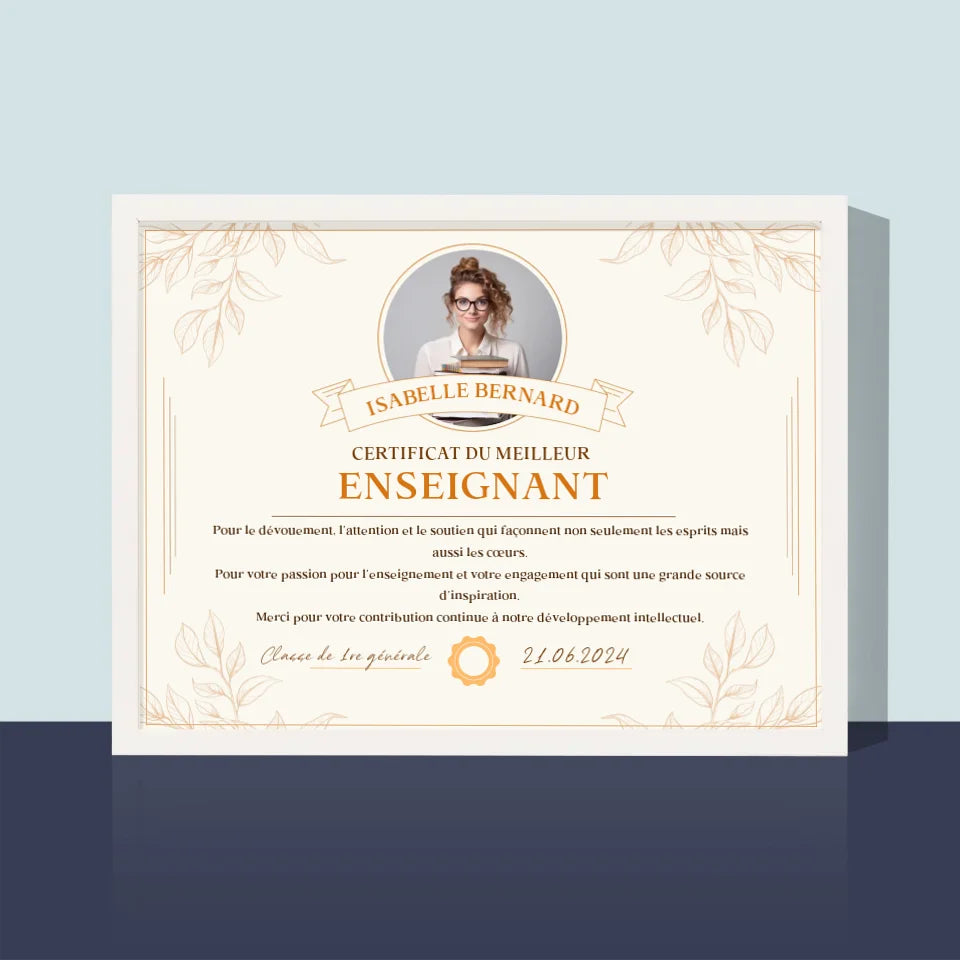 Photo Et Texte: Certificat Du Meilleur Enseignant - Impression encadrée - Horizontale