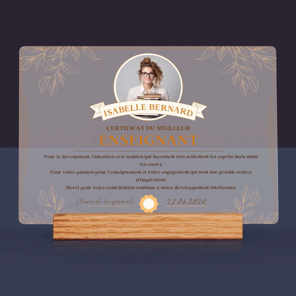 Photo Et Texte: Certificat Du Meilleur Enseignant - Impression sur verre acrylique