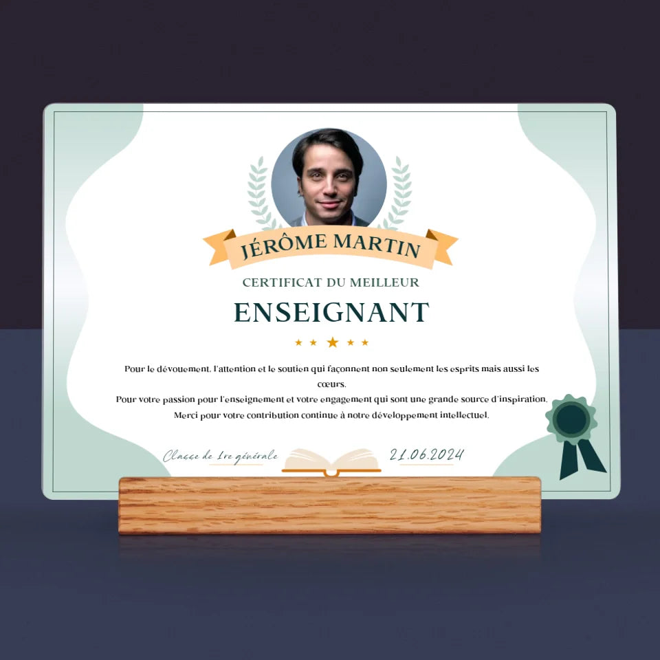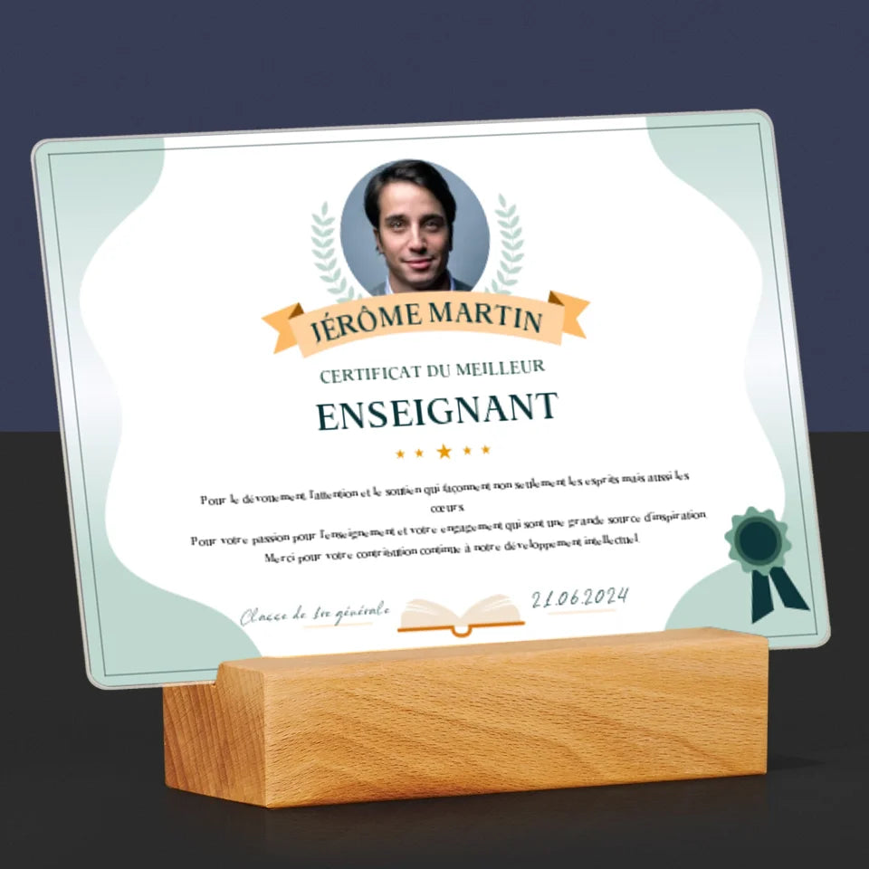 Photo Et Texte: Certificat Du Meilleur Enseignant - Impression Sur Verre Acrylique
