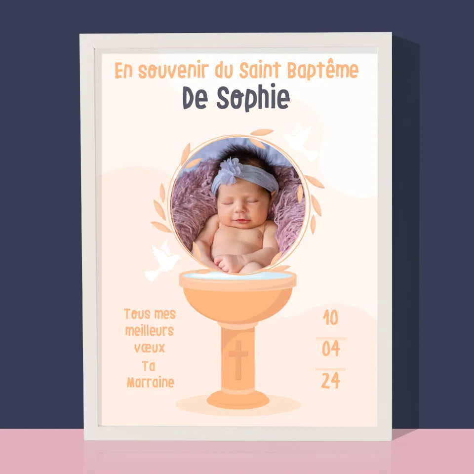 Photo Et Texte: En Souvenir Du Saint Baptême - Impression encadrée - Vertical