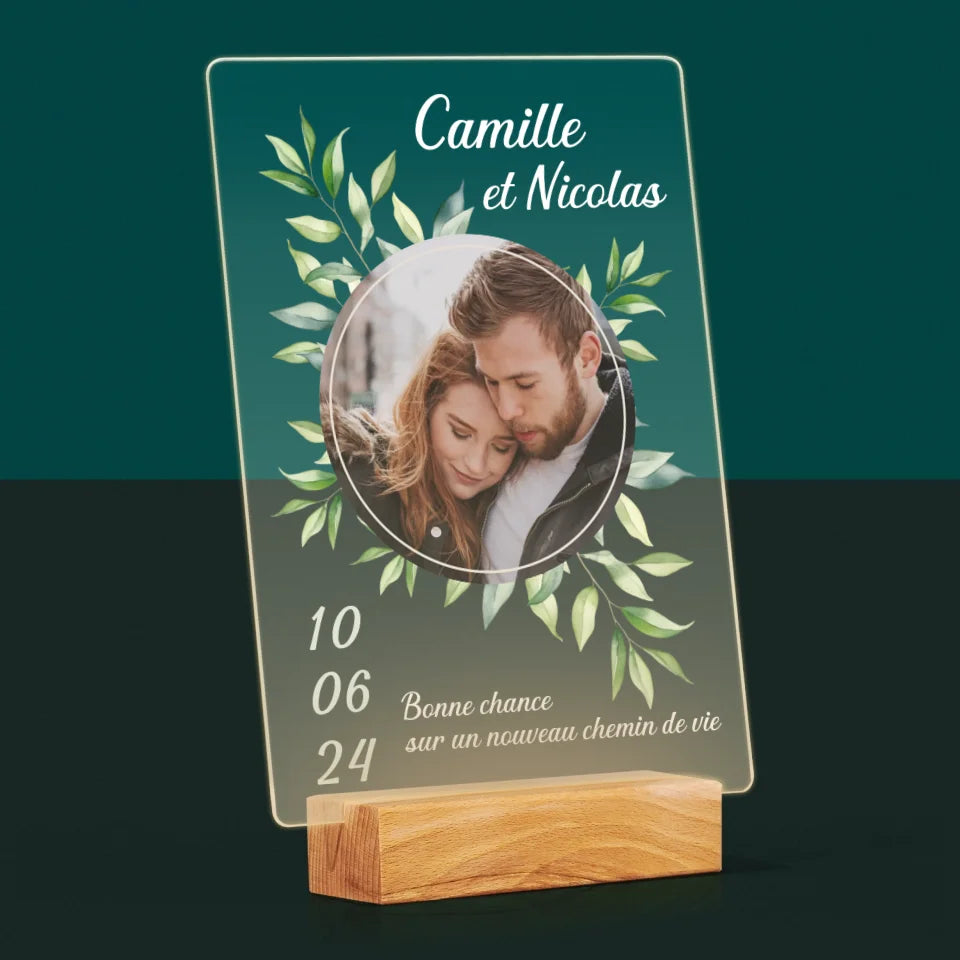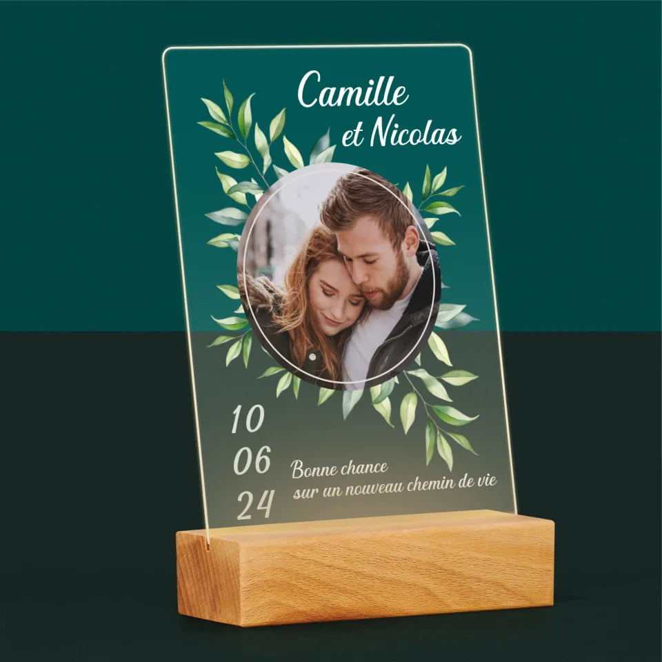 Photo Et Texte: Feuilles De Mariage - Impression sur verre acrylique LED