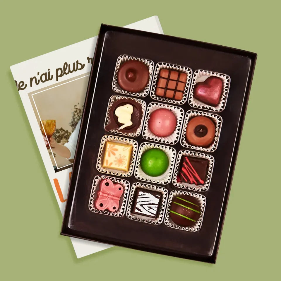 De délicieuses pralines au chocolat belge dans une boîte élégante avec personnalisation de votre choix.